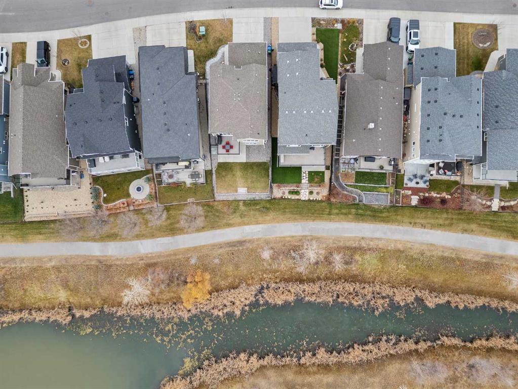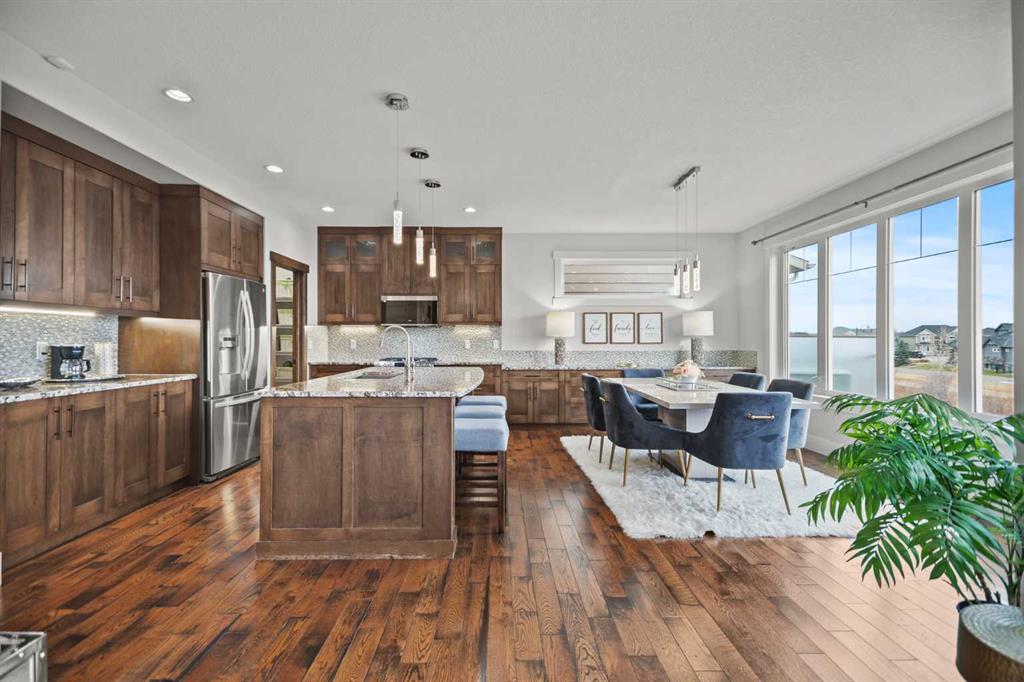 OPEN HOUSE THIS SUNDAY NOV. 9th from 2-4pm! This stunning 2-story walkout home, offering over 3000 sq. ft. living space, is fully finished and features 4 bedrooms and 4 bathrooms with a basement suite! Highlights of this exceptional home include: in-slab in-floor heat, insulated heated double garage with extra wide driveway, central air conditioning, hardie board siding, vinyl deck, upgraded Kohler plumbing appliances, custom cabinets/built-ins with real wood & dovetailed drawers, granite counters throughout, imported Italian tiles, 9 ft ceilings – main floor & basement, large patio, hardwood flooring, stunning vinyl deck overlooking the pond, gas stove (also 220V behind), central vacuum, water softener, and the list goes on! The main floor showcases an open concept design with 9-foot ceilings, custom cabinetry, and high-end stainless steel appliances, including a spacious island that overlooks the cozy living room with a gas fireplace and beautiful wood/glass cabinetry. Abundant windows fill the space with natural light, and you can step out onto a large deck that offers breathtaking views of the pond and vibrant fall colors. Upstairs, relax in the central bonus room or the master bedroom & its spa-like 5-pc en-suite. The spacious 2nd & 3rd bedrooms share the upgraded family bathroom. The walkout basement features a full kitchen, in-floor heating, a family/game room with a second kitchen, second laundry room, a fourth bedroom, and full bath, along with access to a lower walkout deck and a fenced backyard. Ideally located within walking distance to schools, Costco, and scenic pathways. This property is situated in one of Okotoks’ most desirable neighborhoods. It’s truly an ideal home for a growing family!
