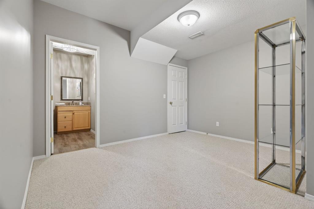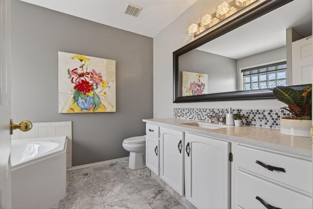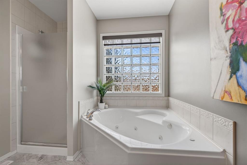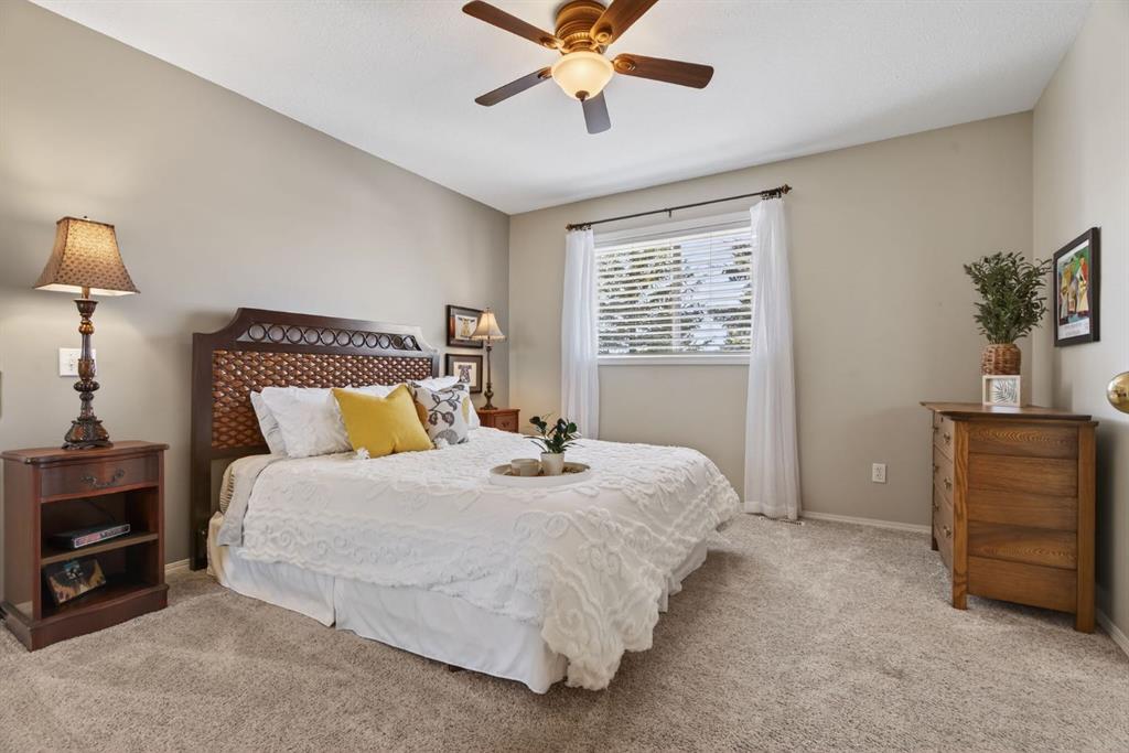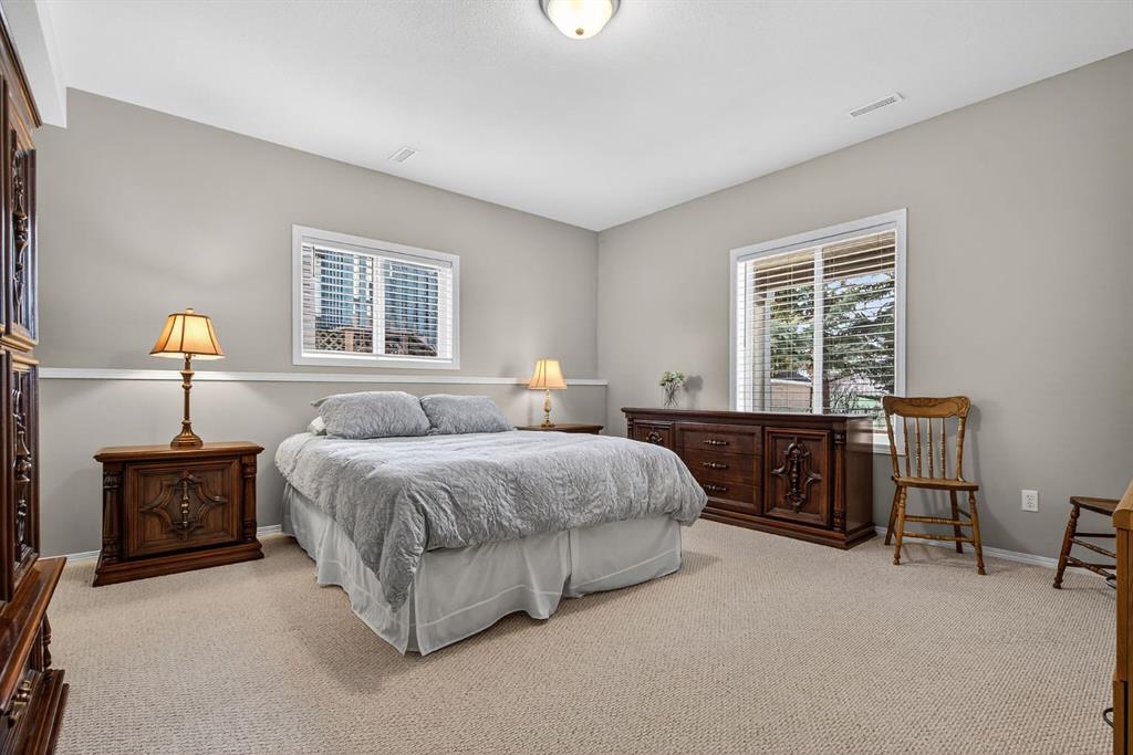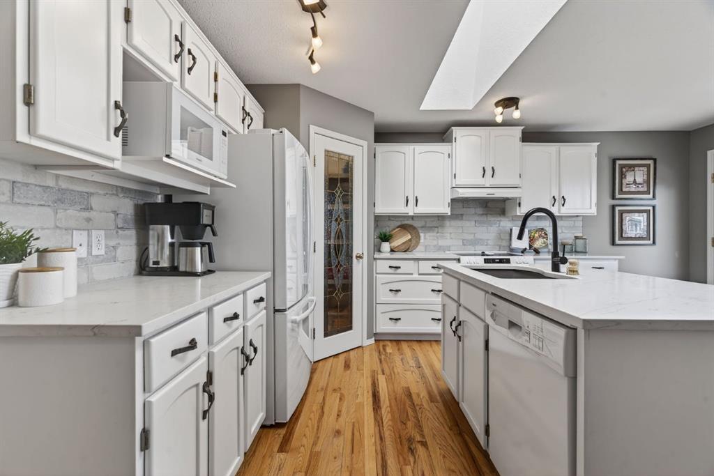 Welcome to easy, comfortable living in this well-maintained bungalow in the desirable lake community of Crystalridge. Perfect for those looking to simplify without sacrificing space, this home has been lovingly cared for by its original owner and offers main floor convenience plus a fully developed walkout lower level with 9 foot ceilings for guests, hobbies, or extended family. The main floor features a bright, functional layout with living and dining areas that flow seamlessly. The kitchen offers ample white cabinetry and workspace, as well as some newer appliances and recently upgraded quartz counters. On the same floor, the spacious primary bedroom includes a private ensuite and custom closet organizers. A second bedroom and full bathroom on the main level provide flexibility for guests or a home office. Downstairs, the walkout basement has a large recreation area and a third large bedroom, creating the perfect space for entertaining or hosting visitors while maintaining privacy. The attached garage features epoxy flooring and lots of shelving. Recent updates to the home include a new furnace, hot water tank and roof within the last 5 years. Kitchen was done 4 years ago as well as paint throughout the home, counters and floors in bathrooms, carpet throughout the upstairs, the front deck with composite as well as glass railing and the railing inside the home. Outside, the low maintenance backyard is ideal for relaxing