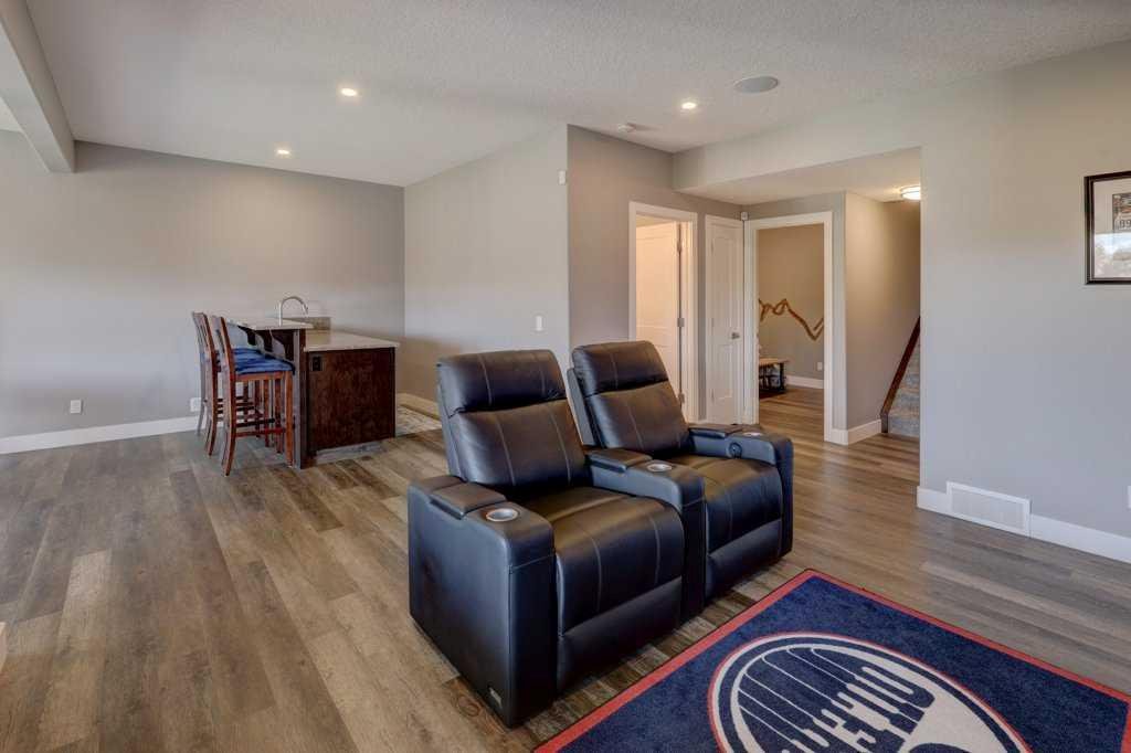 The walk-out lower level is designed for entertainment with a media area, dual TVs, bar with sink and fridge, and access to a beautifully landscaped backyard oasis featuring underground irrigation, stamped concrete patio, raised garden beds and newly planted shrubs. A great space with lots potential.