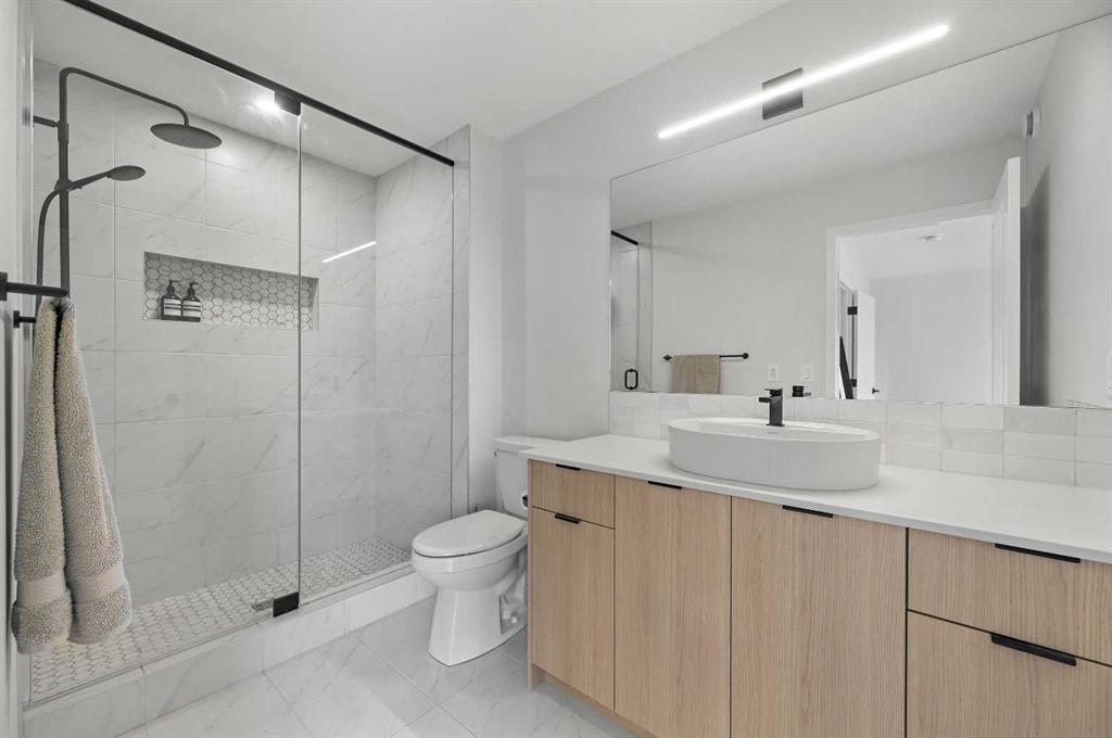 ** Great Value – $80K in upgrades – list available ** Side Entry ** Double Garage ** 1777+ Sq Ft ** 4 Bedroom home ** Immaculately maintained, almost brand new, bright and open plan. Modern design 2-story home in the heart of the vibrant Livingston community. GOURMET KITCHEN – CHEF’S DELIGHT! Custom features include upgraded classic wood-style cabinet doors, an efficient family-approved layout with stainless steel appliances (including a smooth-top stove), a glass panel front fridge, a central island with a flush eating bar, an undermount black granite sink, quartz countertops, custom full-height backsplash tile, and a stainless steel hood fan. The spacious dining room and great room bookend the open design, all of which feature 9-foot ceilings. The larger floor plan features a front main floor bedroom/office/den, an oversized front foyer, a back mudroom, a staircase with railings, and a landing. Super bright design!! All flooring is upgraded with wide-plank LVP hardwood flooring on the main floor and tile floors in the upper bathrooms- no carpet! BONUS: The upstairs bonus room is perfect for a home office, spare bedroom, or extra TV room. Three generously sized bedrooms & 2.5 bathrooms. NOTE: The primary bedroom features a private 3-piece en-suite with an upgraded sink basin, quartz countertops, and a spacious walk-in tiled shower with glass doors. Other upgrades include custom window coverings, an unspoiled basement with high 9′ ceilings, side entry, oversized windows, a rough-in bathroom, and a 22′ x 22′ double-car garage with room for extra street parking out front. Excellent curb appeal with a covered front porch, fully landscaped with a walkway and fencing, all complete. Available for a 30/60 day possession date. Please feel free to call your friendly REALTOR(R) to view.