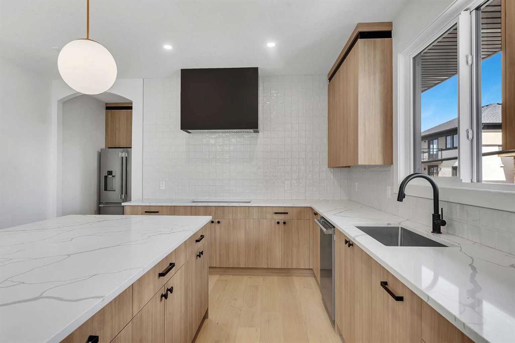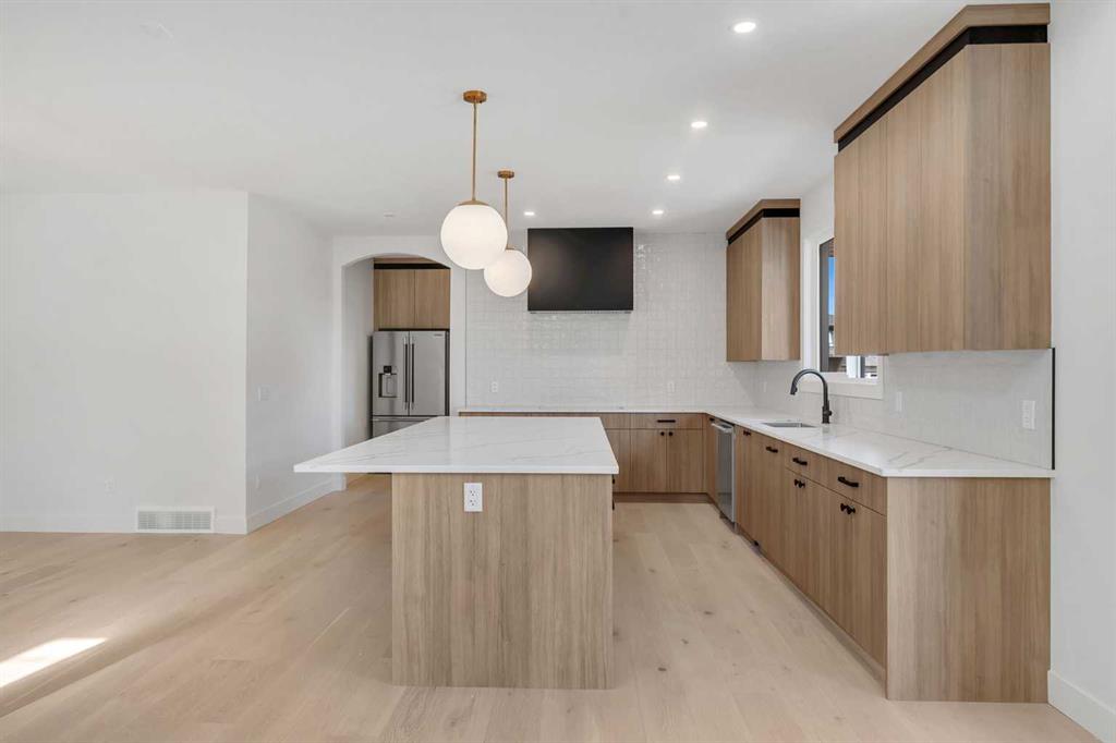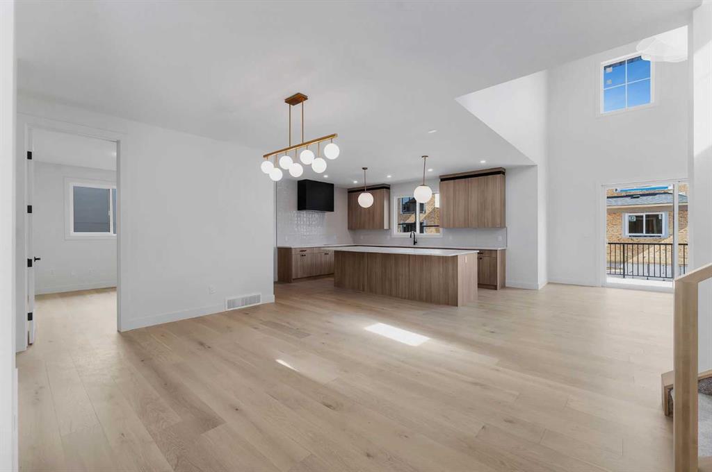 BRIDGES OF LANGDON!! NO NEIGHBOUR TO THE RIGHT!! NEXT TO WALK PATH THAT LEADS TO CANAL!! NEW BUILD!! SEPARATE BASEMENT ENTRANCE!! TRIPLE ATTACHED GARAGE!! 5 BEDROOMS 3.5 BATH!! MAIN FLOOR BEDROOM!! 3200+ SQFT OF LIVING AREA!! Welcome to this beautifully designed home featuring a bright and functional open-concept layout. The main floor offers a spacious dining area flowing seamlessly into the living room, highlighted by OPEN-TO-BELOW CEILINGS and oversized windows bringing in tons of natural light. The living area also provides access to the backyard deck, perfect for indoor-outdoor living. The kitchen is a true standout with EXTENSIVE CABINETRY, A MASSIVE ISLAND, AND BUILT-IN FEATURES, designed for both everyday use and entertaining. A main floor bedroom adds incredible flexibility—perfect for guests, extended family, or a home office. Upstairs, you’ll find 4 generously sized bedrooms, including a PRIMARY BEDROOM WITH A 5PC ENSUITE AND WALK-IN CLOSET. Another bedroom features its own walk-in closet with convenient access to a full bath, while the remaining two bedrooms share a JACK & JILL 4PC BATHROOM. Upper floor laundry adds everyday convenience. A SPACIOUS BONUS ROOM completes the upper level—ideal for a family room, media space, or kids’ play area. HOME WILL HAVE BRICK FOR EXTERIOR AS WELL! Located in the desirable community of Bridges of Langdon, this home offers modern living with thoughtful design and space for the whole family. RARE OPPORTUNITY TO OWN A NEW BUILD WITH THIS FUNCTIONAL LAYOUT—DON’T MISS IT!!