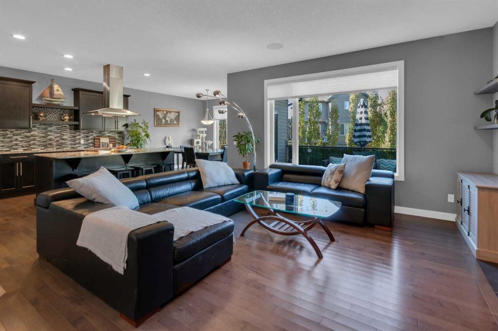 OPEN HOUSES on Sat Nov 1st & Sun Nov 2nd @ 2-4pm ** Welcome to this beautifully maintained 2 storey WALKOUT home on MASSIVE 664sqm Pie shaped lot in the sought after community of Sunset Ridge, Cochrane. With over 2612 sq. ft. of finished living space, this property offers the space and flexibility a growing family needs. Situated on a quiet cul de sac, the home features an inviting open concept main floor with hardwood and tile flooring, a spacious kitchen with granite countertops, and a bright dining area that opens onto a large west-facing deck, perfect for morning coffee or family BBQs. Upstairs, you’ll find three comfortable bedrooms, including a primary suite with ample closet space and 5pc ensuite bath. The walkout basement expands the living area with laminate flooring and a home theatre setup featuring a projector, 120″ screen, Klipsch sound system, and receiver, included. Note: roughed in for wet bar. Additional highlights include central air conditioning, a double oversized 23’4×19’4 attached garage, underground sprinklers and a fenced yard ideal for kids and pets. Shopping, schools and parks are just steps away, making this an exceptional family home in one of Cochrane’s most desirable neighborhoods.