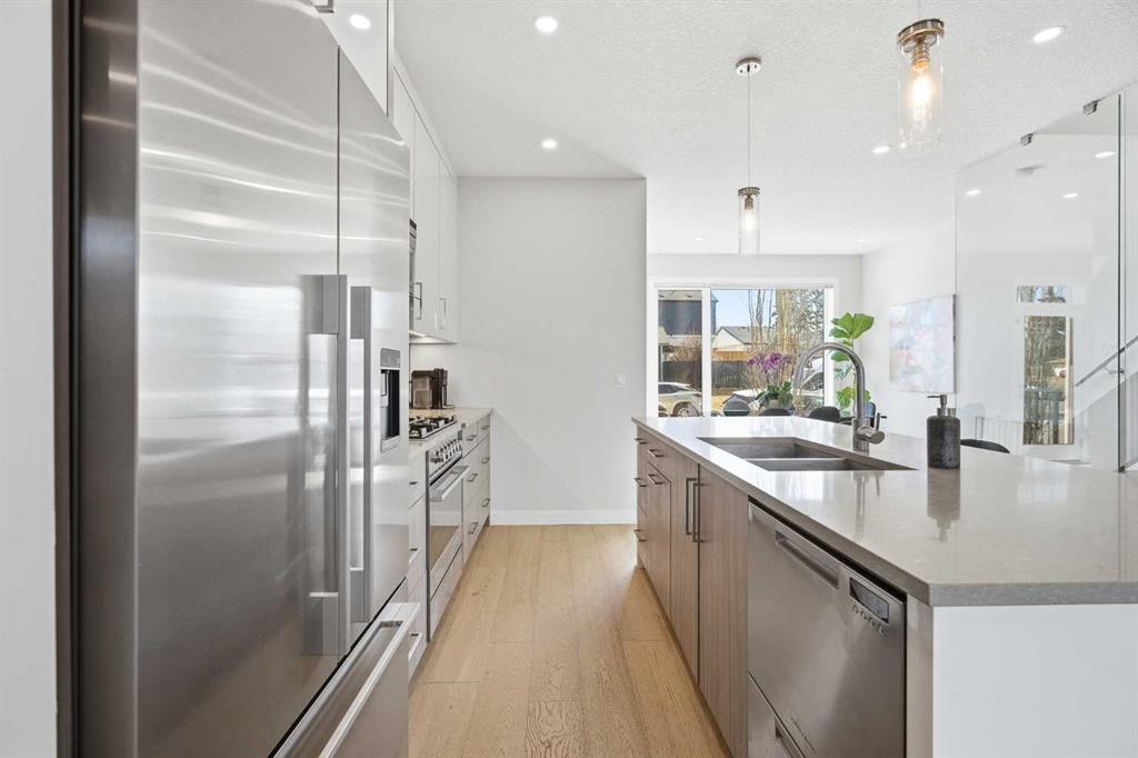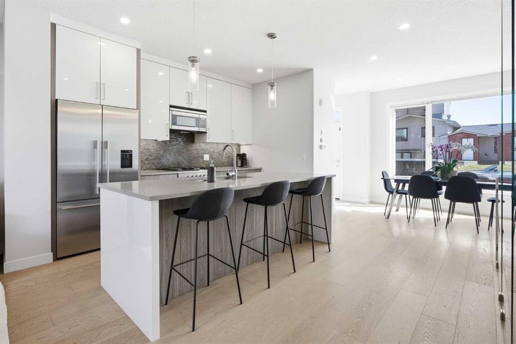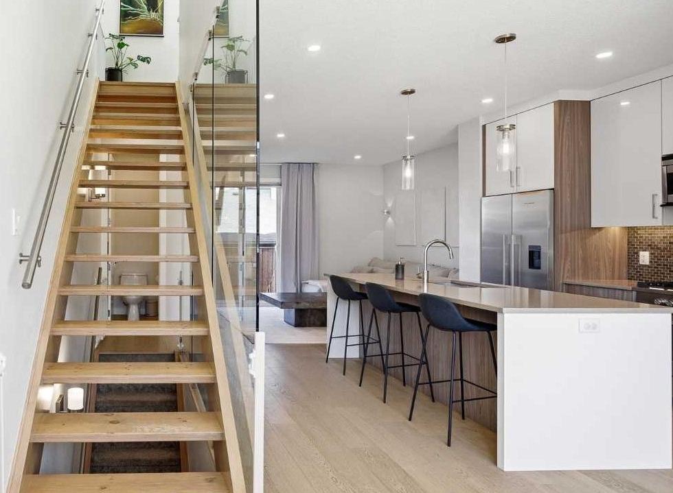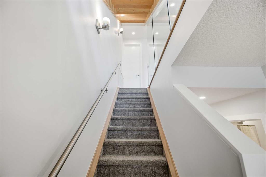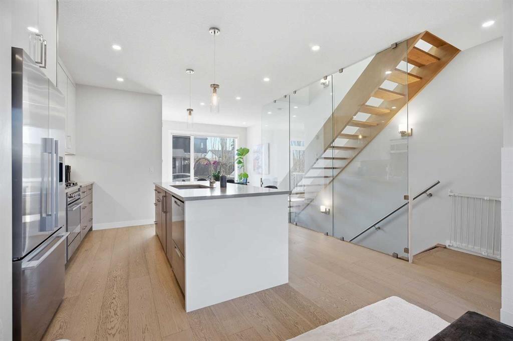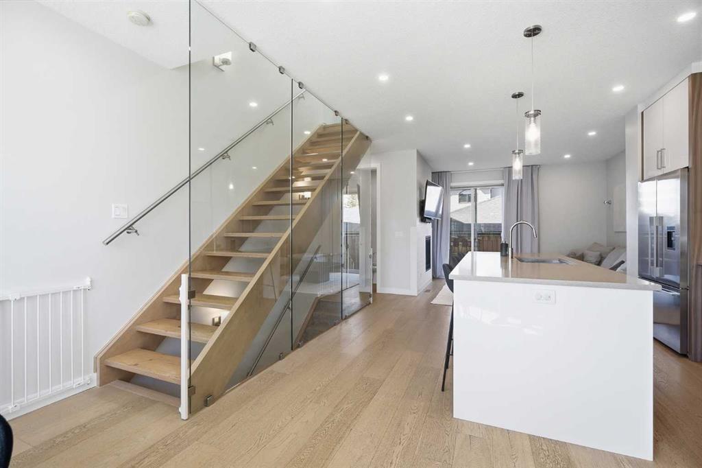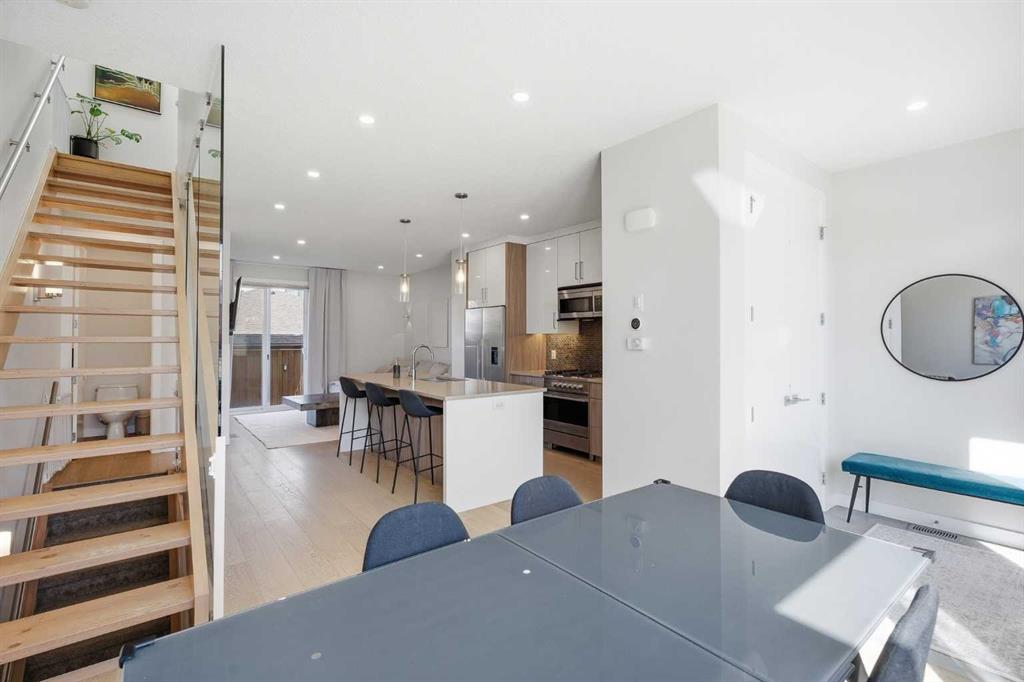 OPEN HOUSE Saturday April 18 1 -4pm …..Welcome to this beautifully designed 4 bedroom, 3.5 bathroom townhouse offering 1,690 sq. ft. of total living space in the highly desirable community of Windsor Park. This spacious home features a functional layout for families and entertaining, with a bright open-concept living area and modern finishes throughout. Many up grades set this home apart, including a spectacular eye catching Open Riser Staircase with sleek glass panels, engineered Hardwood flooring, solid 8 ft doors throughout, 9 ft high ceilings, A huge Skylight, modern window coverings, and AIR CONDITIONING. The gourmet kitchen is a true highlight featuring Fisher & Paykel SS appliances, including a Gas stove, elegant neutral cabinetry, QUARTZ countertops and a large Island , all adjacent to a sun filled dining space, ideal for entertaining. The living room displays a gas fireplace so you can cozy up in the cooler months and a patio door for access to the the Private Fenced-in Patio backyard. The impressive and spacious primary suite offers soaring ceilings, a walk in closet, and a luxurious ensuite complete with dual sinks and a glass enclosed shower–truly a standout feature. Two additional bedrooms are generously sized and the conveniently located Full sized Washer/Dryer add to the home’s functionality. The fully developed basement features 9 ft ceilings, a comfortable Rec-room with a wet bar, a 4th bedroom and a full 4 piece bath–Ideal for guests, extended family or just entertaining. This townhouse is part of a SELF MANAGED Condo, with LOW fees of only $345.00 a month, offering an affordable option for maintenance and management. Included is a single detached garage. . Ideally located to an abundance of amenities such as: Britannia/Chinook Shopping Centers, Lina’s Italian store, Stanley Park, Dog Parks, Brown’s social house, Village Ice Cream, Sunterra Market, Monogram’s, Schools, Public Transit, and easy access to Elbow Drive and Macleod Trail. This home has so much to offer…Location, Value and Affordability! Come see what Windsor has to offer !