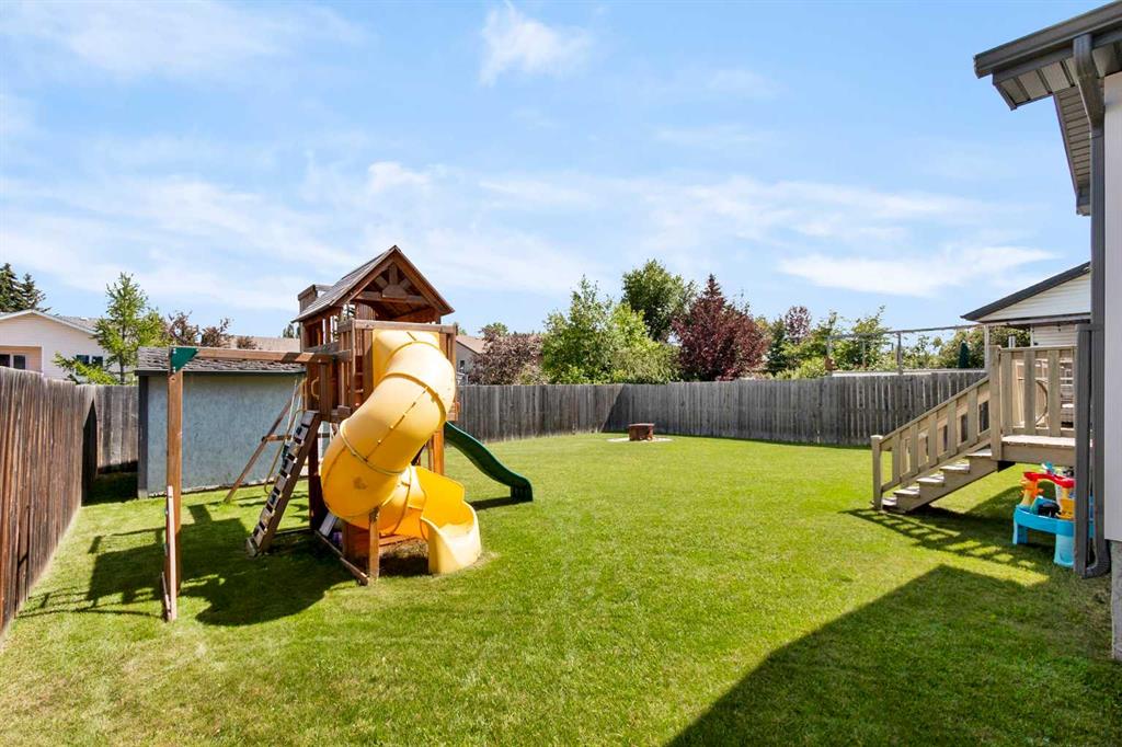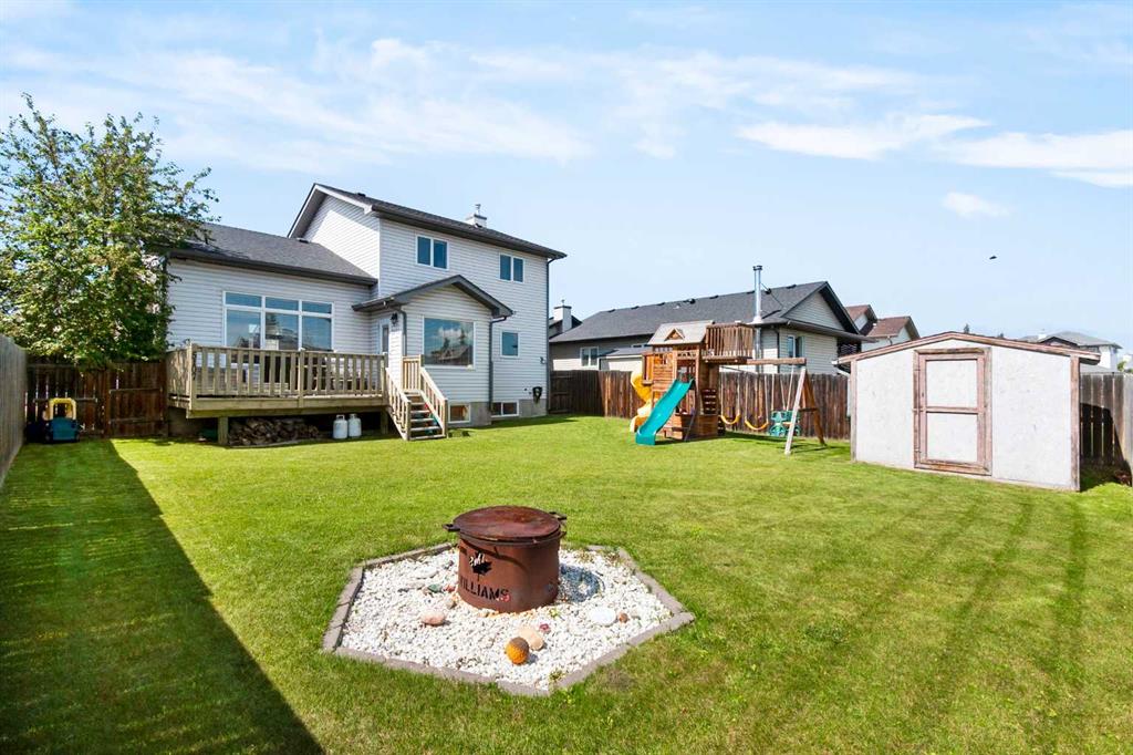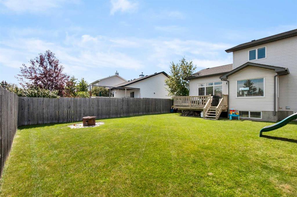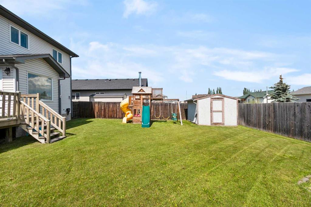 Welcome to this beautifully maintained two-storey home nestled in a quiet and family-friendly neighborhood. Featuring 3 spacious bedrooms, 4 bathrooms, and a double attached garage, this home offers comfort, space, and functionality for the modern family. Step inside to a bright and airy living room with vaulted ceilings and a cozy gas fireplace—perfect for relaxing or entertaining guests. The adjacent dining area flows seamlessly into a large, well-appointed kitchen with ample cabinetry, a large island, corner pantry, and a full suite of appliances including dishwasher, fridge and stove. From the dining area, step out onto the large deck overlooking a fully fenced and landscaped backyard complete with a shed. The main floor is completed by a convenient 2-piece powder room just off the kitchen. Upstairs, you’ll find two generous sized bedrooms, a full 4-piece bathroom, and the spacious primary suite featuring his-and-hers closets and a private 4-piece ensuite. The fully finished basement adds even more living space, including a large recreation room, a wet bar-style area with a second dishwasher, a 4-piece bathroom, and a laundry/mechanical room with tons of storage and a central vacuum system. The “Gem Stone” lighting around the front exterior and back deck of the home make it so you never have to hang lights again! This home truly has it all—room to grow and space to entertain. Don’t miss your chance to make it yours!