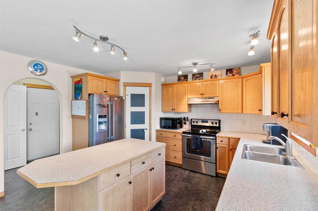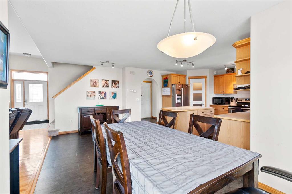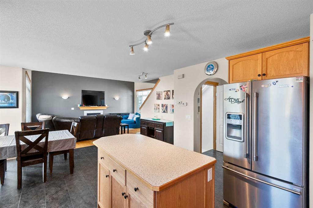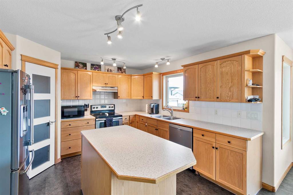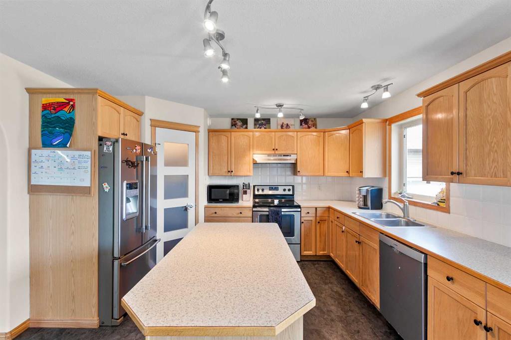 Welcome to this beautifully maintained two-storey home nestled in a quiet and family-friendly neighborhood. Featuring 3 spacious bedrooms, 4 bathrooms, and a double attached garage, this home offers comfort, space, and functionality for the modern family. Step inside to a bright and airy living room with vaulted ceilings and a cozy gas fireplace—perfect for relaxing or entertaining guests. The adjacent dining area flows seamlessly into a large, well-appointed kitchen with ample cabinetry, a large island, corner pantry, and a full suite of appliances including dishwasher, fridge and stove. From the dining area, step out onto the large deck overlooking a fully fenced and landscaped backyard complete with a shed. The main floor is completed by a convenient 2-piece powder room just off the kitchen. Upstairs, you’ll find two generous sized bedrooms, a full 4-piece bathroom, and the spacious primary suite featuring his-and-hers closets and a private 4-piece ensuite. The fully finished basement adds even more living space, including a large recreation room, a wet bar-style area with a second dishwasher, a 4-piece bathroom, and a laundry/mechanical room with tons of storage and a central vacuum system. The “Gem Stone” lighting around the front exterior and back deck of the home make it so you never have to hang lights again! This home truly has it all—room to grow and space to entertain. Don’t miss your chance to make it yours!