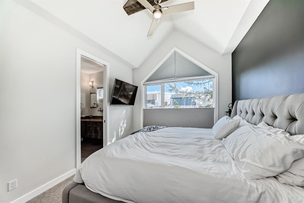 The primary retreat is a true standout, showcasing vaulted ceilings that create an airy, luxurious feel. A large walk-in closet, and large ensuite bathroom featuring a double vanity and IN-FLOOR HEAT. Downstairs, the fully finished basement expands your living space with a stylish wet bar, additional bedroom, full bathroom (with in-floor heat!), storage, and a cozy lounge area—perfect for guests, relaxing evenings at home, or entertaining!