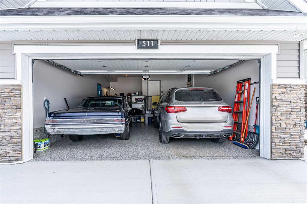 Bonus: The double front-tandem oversized garage is a hobbyist’s dream—featuring epoxy floors, finished walls, and a gas rough-in for future heating.