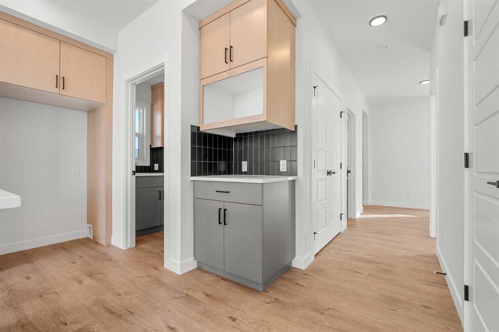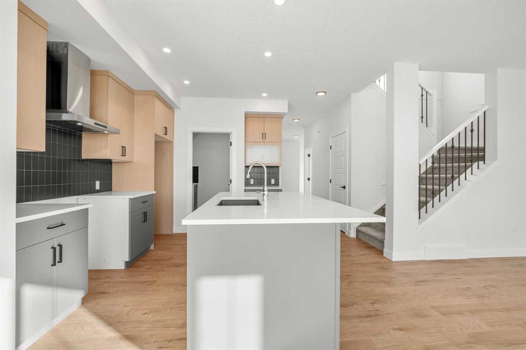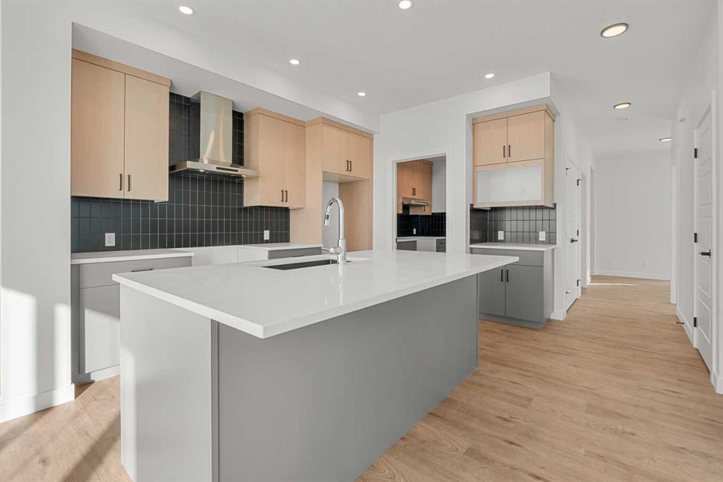Perfectly positioned backing onto 40th Avenue with stunning mountain views, this home combines elevated design with everyday functionality. The main floor showcases a modern kitchen complemented by a fully equipped spice kitchen, ideal for entertaining and preparing elaborate meals while keeping the main space pristine. A convenient side entrance provides direct access to the undeveloped basement, offering excellent potential for future development or multi-generational living.