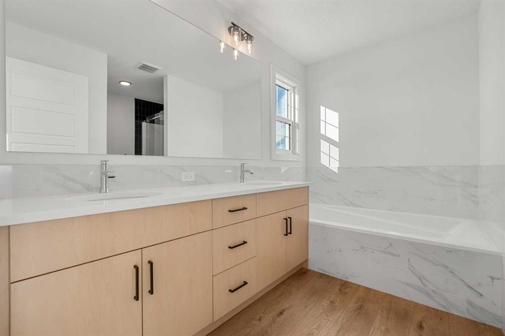 Upstairs, the home continues to impress with a bright and expansive bonus room featuring vaulted ceilings, creating an open and airy retreat. The luxurious primary suite includes a spa-inspired 5-piece ensuite with a soaker tub with tiled skirt, separate shower, and private water closet for added comfort and privacy. Luxury vinyl plank flooring in the bonus room and upper hallways adds both durability and modern style.