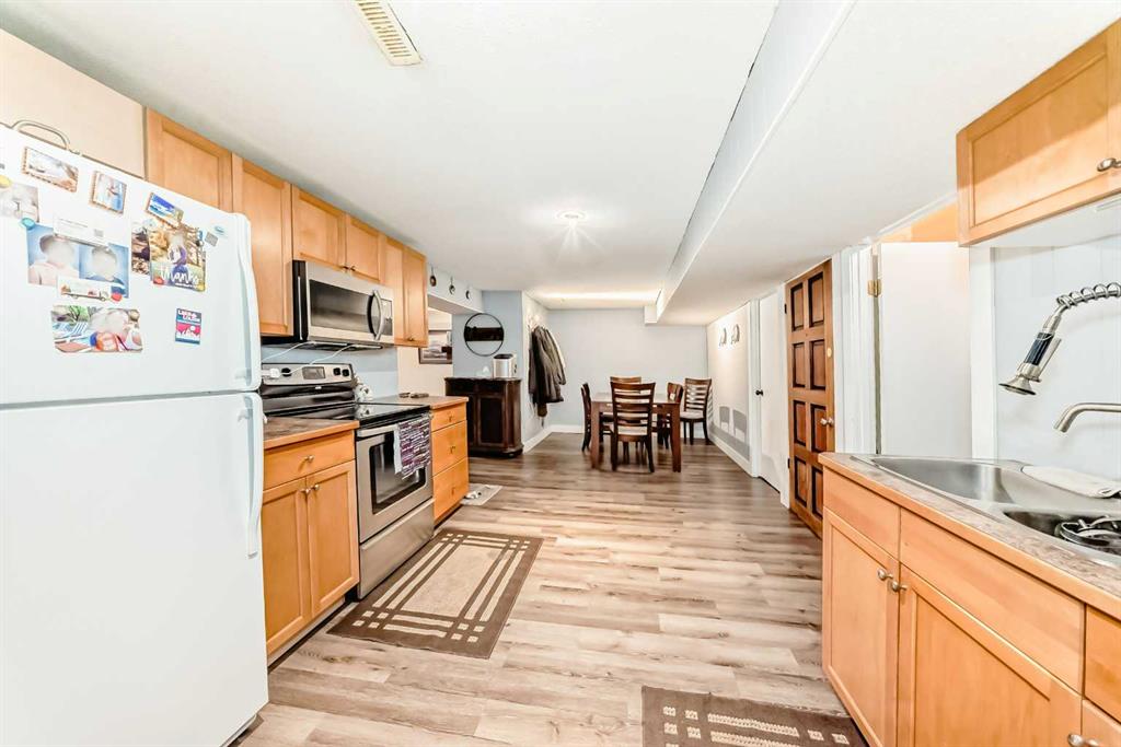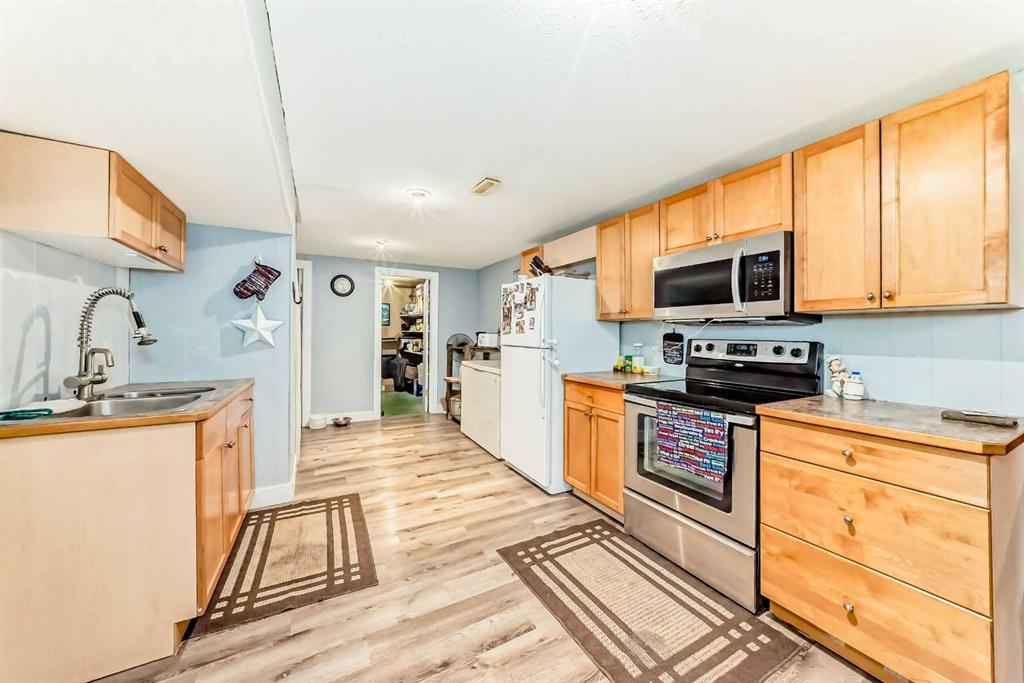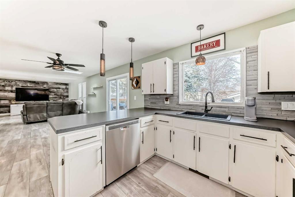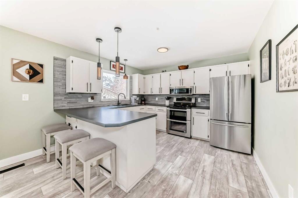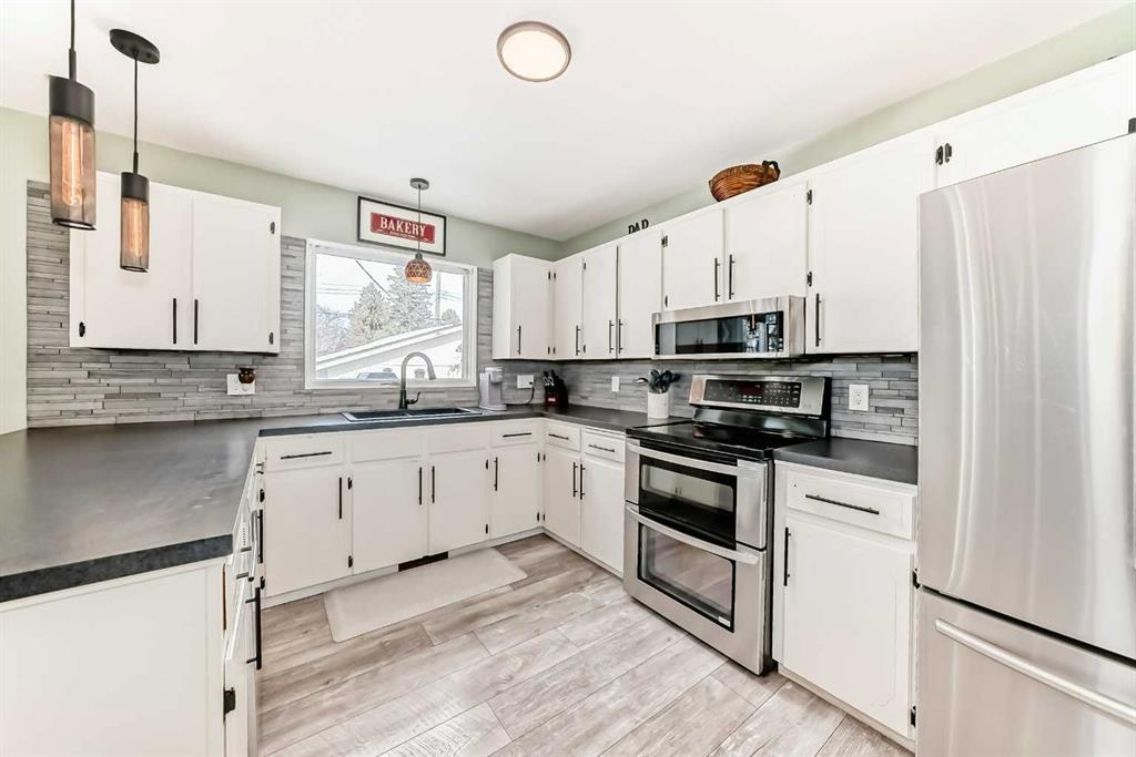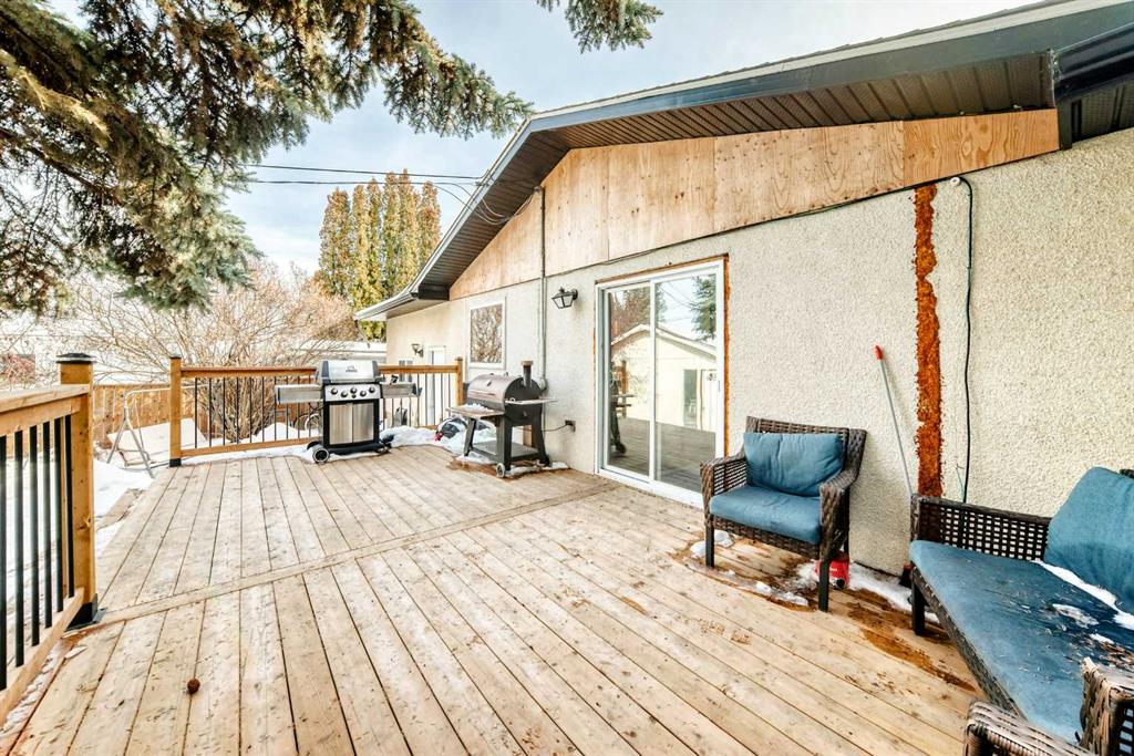 This one checks all the boxes! Older bungalow that has seen numerous updates over the recent years. As you enter you will appreciate the open floor plan with the living, dining and kitchen well laid out for easy entertaining and family time. The wrap around kitchen with eating counter is the ideal set up for a casual meal, homework or visiting with the cook . Large living room with oversized window to the front street is perfect for movie night or maybe having buddies over to watch the game! This level is where you will find 3 of the 5 bedrooms and the master bedroom has a 3 pce ensuite as well as a 4 pce. bathroom to finish off this level. As you head downstairs you have a laundry pair that is handy for the upper level as well this where you find the entrance to the attached garage which is handy for bringing in the groceries or the perfect work shop. Downstairs there is a kitchenette, dinette and living room, 2 good sized bedrooms, storage room/pantry as well as the utility room with another laundry pair. Outside does not disappoint with front and rear decks, a double detached garage, shed and is nicely treed and fenced. This home is updated, tastefully decorated, move in-ready and has a great location.