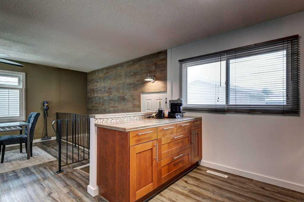 The main level is thoughtfully designed, featuring durable luxury vinyl plank flooring and custom blinds and shutters throughout. At the heart of the home is a professionally renovated kitchen, complete with stone countertops, full-height cabinetry, built in pantry, and tasteful finishes that balance both form and function. The main-floor bathroom has also been updated with a clean, modern aesthetic and a practical 3-piece layout, featuring a large trough sink, walk-in shower and stylish tile.