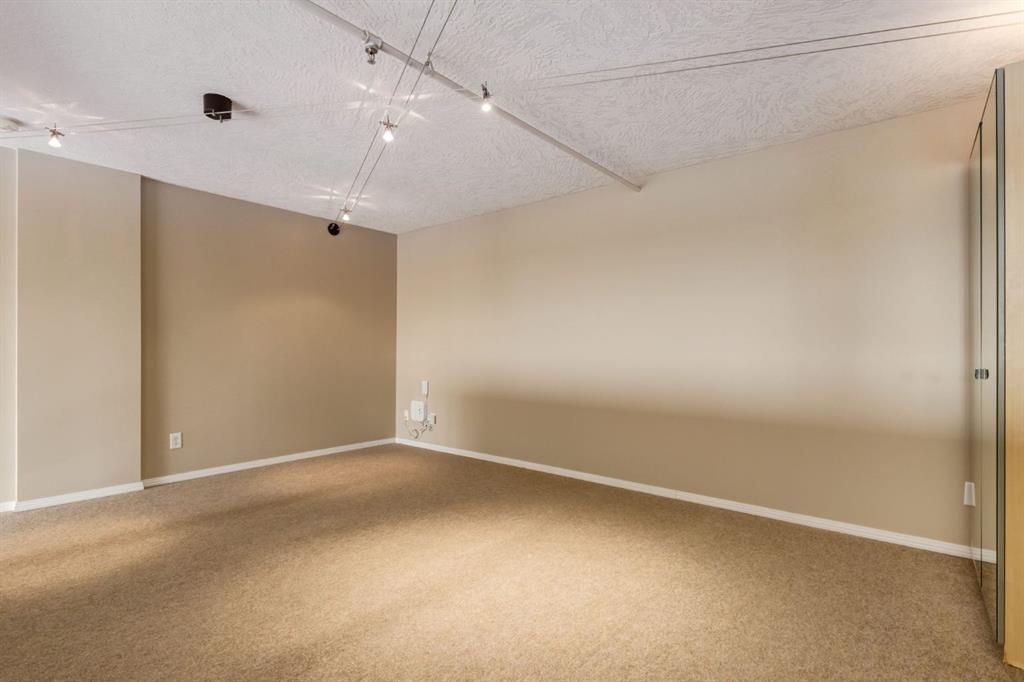 The north-facing windows fill the space with soft, ambient natural light all day—perfect for working from home or relaxing—without the heat of direct sun. You’ll enjoy panoramic views of East Village, the Bow River, and Calgary’s skyline.