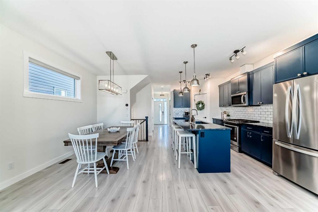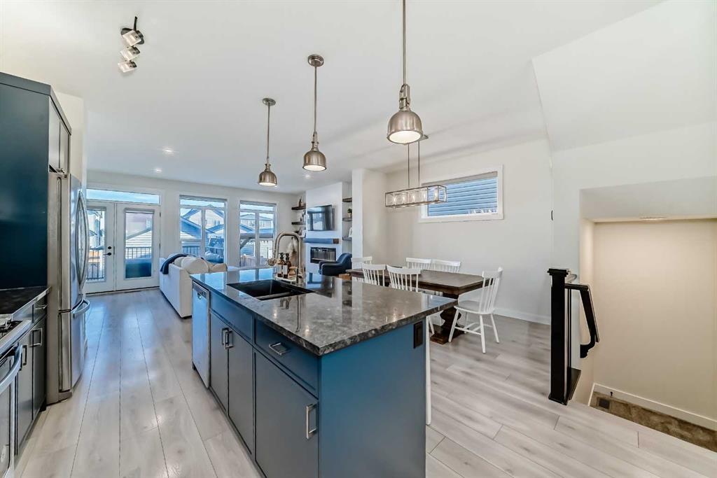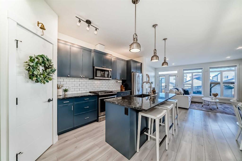 ** OPEN HOUSES, SAT. FEB. 14, 12-2PM & SUN. FEB. 15, 2-4PM ** Welcome to this stunning, completely move-in ready home in the sought-after community of Chinook Gate. Meticulously maintained and beautifully finished, the pride of ownership is evident from the moment you step through the front door. A generous west-facing office/den offers the perfect work-from-home space, filled with natural light. The bright, open-concept main living area is both functional and stylish, featuring a beautiful kitchen with upgraded lighting, a large island, pantry, ample cupboard space and gas stove. Timeless blue cabinetry paired with grey stone countertops creates a warm yet sophisticated atmosphere. The east-facing living room is a true showpiece, highlighted by an electric fireplace with a shiplap feature wall, natural wood mantle, and custom built-in shelving. An entire wall of windows floods the space with morning light. Both the front and backyard have been thoughtfully landscaped with low-maintenance turf. The backyard is an entertainer’s dream, complete with a large deck, a built-in outdoor kitchen with BBQ, pergola and stone walkway — a space you’ll never want to leave. Upstairs, you’ll find a spacious bonus room and three bedrooms, including a large primary retreat featuring a 4 piece ensuite, a walk-in closet and incredible west-facing private balcony — the perfect place to enjoy your morning coffee. Convenient upper-floor laundry adds to the home’s thoughtful design. The fully finished basement expands your living space with a fourth bedroom, generous recreation area, full bathroom, and plenty of storage. Additional highlights include air conditioning for summer comfort and a double detached garage for secure parking. There is truly nothing missing in this exceptional home — simply move in and start making memories. Located in the vibrant community of Chinook Gate, residents enjoy year-round family events such as community BBQs, summer movie nights, and Easter egg hunts. Just a block from a park and minutes to Chinook Winds Park, schools (elementary through high school), and all amenities, this location offers the perfect blend of lifestyle and convenience.