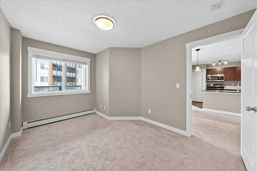 ** OPEN HOUSE SAT FEB 28TH 11AM – 1PM** **QUIT PAYING YOUR LANDLORDS MORTGAGE** Own for less in this smartly designed 2-bed, 2-bath condo in Emerald Sky, Kincora. With bedrooms on opposite sides, this 697 sq ft layout is perfect for singles wanting a home office or roommate privacy. The north/northeast exposure keeps the unit cool on hot days…no extra costs for AC needed! The modern kitchen features granite countertops, stainless steel appliances, and soft-close cabinets, opening to a cozy balcony with faux turf and string lights. Plus, the in-suite laundry is tucked away from the bedrooms, so you can run loads at night without losing sleep. In-suite laundry room, luxury vinyl plank flooring, and a heated underground titled parking stall (fits a full-size truck!) add everyday ease and comfort. Enjoy access to the private, east-facing rooftop patio on the 7th floor, exclusive to unit owners…. catch the sunrise with your morning coffee or unwind in the sun when you want it. Whether you drive or not, this location works: groceries, Dollarama, and your caffeine fix are just a few minutes away by foot, and for families with one car, it’s even more convenient.