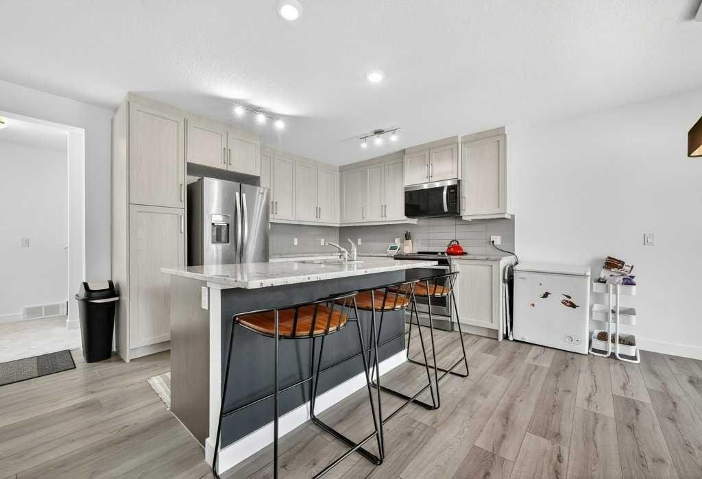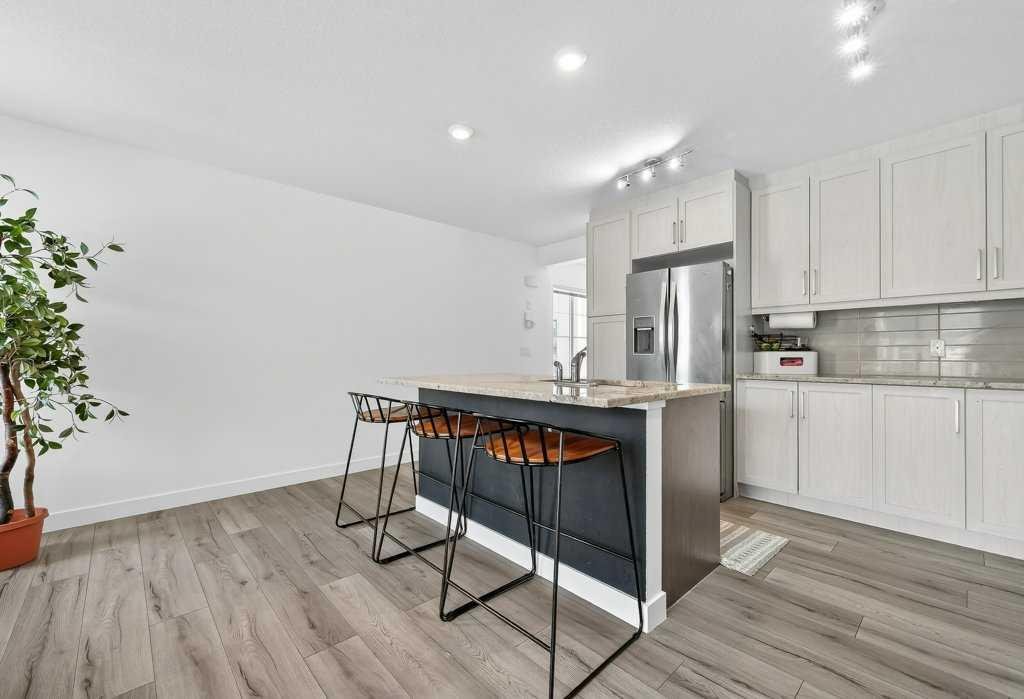 Welcome to this freshly painted 3 bed, 2.5 bath END UNIT townhouse in the desirable community of Sage Hill. This move-in ready home features a fully finished WALKOUT basement backing onto greenspace, a single attached garage, and two balconies plus a patio, offering extra space and privacy. The bright and spacious living room showcases soaring ceilings and massive windows, along with a convenient 2-piece bathroom and access to your first balcony. Step up to the open-concept kitchen and dining area, complete with quartz countertops, a large island, stainless steel appliances, and access to your second west-facing balcony with BBQ gas line, perfect for evening sun and entertaining. Upstairs, you’ll find two large bedrooms, each with its own ensuite bathroom. The primary suite features a double-wide closet and a spacious ensuite with quartz countertops and double vanities, while the second bedroom includes a walk-in closet. The fully finished WALKOUT basement adds a third bedroom and access to a patio backing onto greenspace, offering additional living space and flexibility. Located just minutes from Sage Hill Crossing, Walmart, T&T Supermarket, restaurants, parks, and quick access to Stoney Trail. Book your showing today!