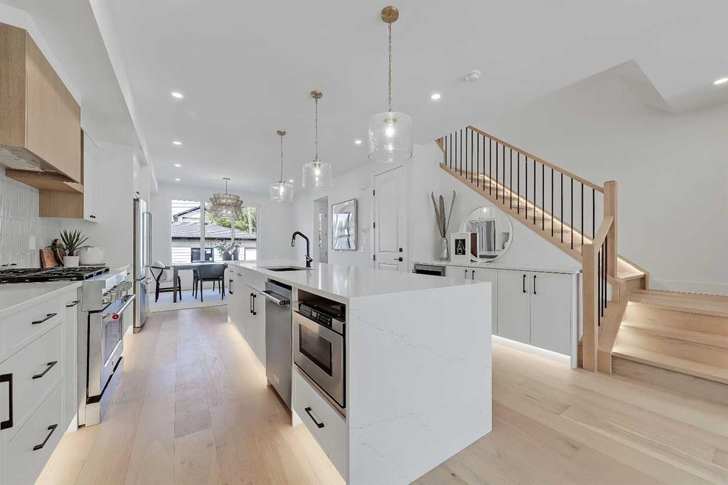 Step into a home where TIMELESS DESIGN meets MODERN FUNCTIONALITY, all wrapped up in a striking architectural exterior. Thoughtfully designed to complement both everyday life and elegant entertaining, this BRAND-NEW 5-bed SEMI-DETACHED home in beautiful MOUNT PLEASANT features high-end finishes, soaring windows, a flowing open floorplan to suit your lifestyle, plus a fully finished LEGAL 2-BED LOWER SUITE (approved by the city). From the moment you walk through the charming front entry you’re greeted with a sense of understated luxury. The foyer is bright and inviting w/ a built-in bench, leading into a sunlit front living room that features a stunning inset gas fireplace with full-height tile surround with convenient built-in millwork on either side. Moving into the heart of the home, the stunning chef’s kitchen is a showstopper featuring custom ceiling-height cabinetry, quartz countertops, an oversized island, a high-end appliance package, plus designer lighting to bring the whole space together. The open-concept design keeps the conversation flowing as you gather in the dining room with elegant moulding, overlooking the private backyard through large sliding windows – perfect for summer dining! Tucked behind the kitchen, the mudroom offers functional storage for coats, boots, and backpacks, keeping everyday clutter out of sight, while the stylish powder room rounds out the main level. Upstairs, a cozy bonus room with built-in media centre greets you before heading to the primary suite. Wake up to natural light streaming in through large windows across the tall ceiling, then start your day in the beautifully designed 5-pc ensuite with a spa-like shower, dual vanity, and a freestanding soaker tub that practically begs for a relaxing evening soak. The walk-in closet is fully built out with custom shelving and storage solutions. Down the hall, two spacious bedrooms share a chic bathroom with a fully tiled tub/shower combo, while the laundry room – with extra storage and a sink – makes everyday chores a breeze. The lower level is a legal 2-bed suite (subject to permits & approval by the city) with endless possibilities – rent it out for extra income, use it as a mother-in-law suite, or keep it as additional living space for your family! With a private entrance, full kitchen, spacious living area, modern 4-pc bath, in-suite laundry, and stylish finishes that match the rest of the home, it’s a functional and flexible extension of the house. Set in the heart of MOUNT PLEASANT, this home is just minutes from Confederation Park, where walking paths, playgrounds, and green space offer an escape from the city without leaving your neighbourhood. Quick access to 16th Ave and 4th Street puts downtown, Kensington, and major routes within easy reach. Families will love the proximity to top-rated schools, while coffee shops, local restaurants, and weekend markets add to the charm of this vibrant inner-city community.