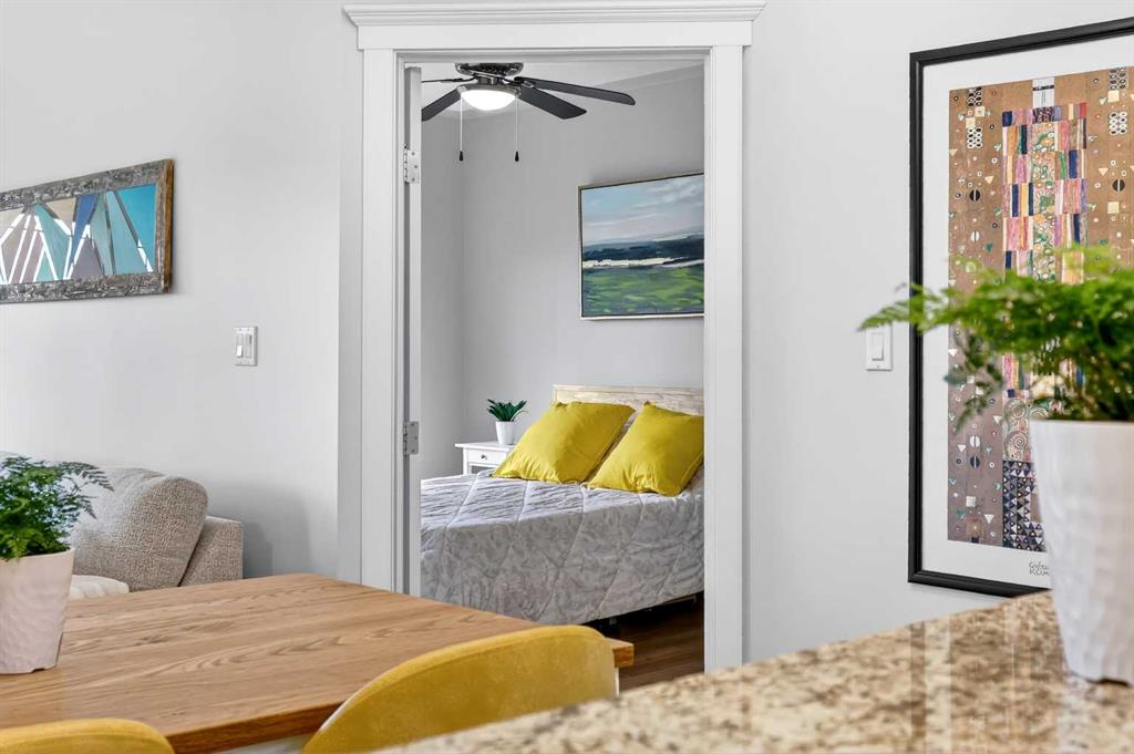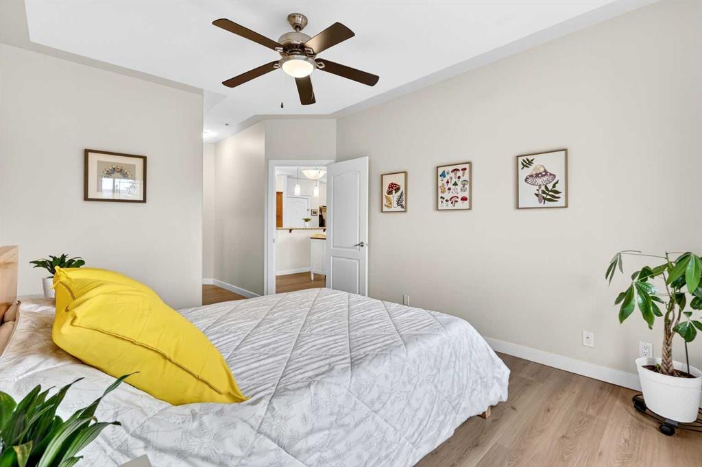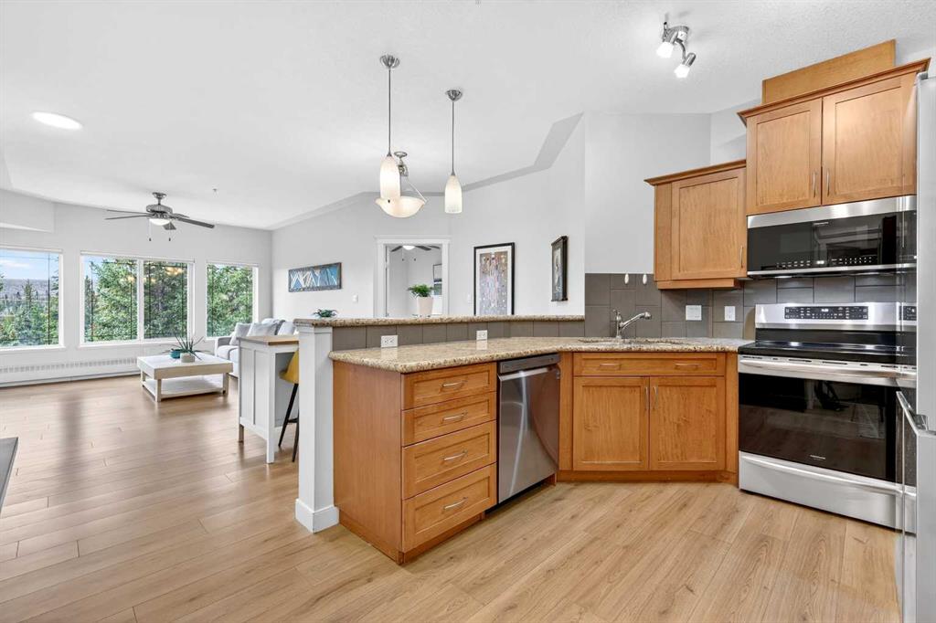 Is there a 2-bed apartment in Discovery Ridge with forest views and over 1000 sqft? This beautifully updated 2-bedroom apartment in Discovery Ridge offers over 1000 square feet of living space, high ceilings, and a rare south-facing balcony backing onto protected forest, combining comfort, privacy, and natural surroundings. Step inside and you are welcomed by a bright, open floor-plan where high ceilings and natural light enhance the sense of space. The living and dining areas flow seamlessly together, creating an ideal setting for both relaxing and entertaining. The kitchen is equipped with brand new appliances and is complemented by fresh laminate flooring, new paint, and updated window coverings throughout, giving the entire home a clean, modern feel. As you move through the home, two generously sized bedrooms offer comfort and functionality. The primary suite serves as a private retreat, complete with a full walk-in closet and a 4-piece ensuite. The second bedroom is equally spacious, perfect for guests, a home office, or additional living needs. One of the standout features is the south-facing balcony, where you can unwind while overlooking the protected forest, offering rare privacy and a peaceful connection to nature. Located in the highly sought-after community of Discovery Ridge, this home provides quick access to Stoney Trail and is just minutes from west Calgary amenities, shopping, dining, and outdoor pathways. This 2-bed apartment in Discovery Ridge is a perfect blend of modern updates, functional design, and natural beauty.