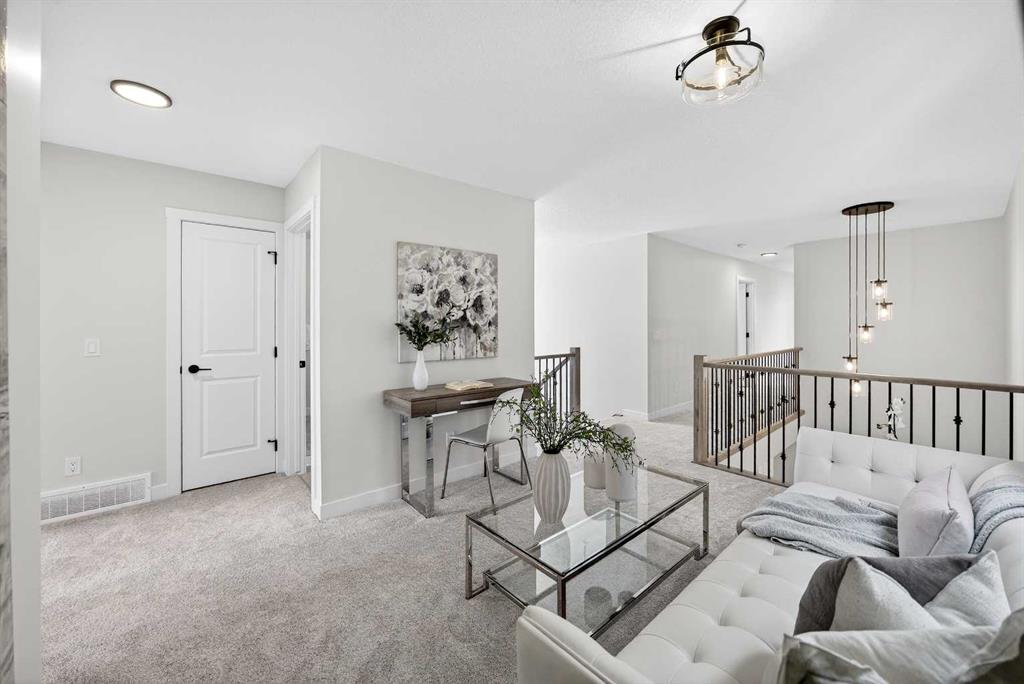 Are you tired of the same cookie-cutter layouts and craving something more traditional while still enjoying the benefits of brand-new? With over 2,300 sq. ft., 4 bedrooms, 2.5 bathrooms, a main floor office and a thoughtfully designed floor plan, 52 Fireside Common might be exactly what you’ve been waiting for. Stepping inside, you’re welcomed by a spacious entryway and a front flex room that’s tucked away from the hustle and bustle of the home. Flowing through the main floor, you are greeted by a separate living and dining room. At the heart of the home is a stunning kitchen featuring warm cabinetry, elegant white quartz countertops, and stylish black hardware. The large central island provides plenty of room for entertaining, while the adjoining family room invites you to relax around the cozy focal-point fireplace. For those who love to cook, you’ll appreciate the oversized pantry with space for all your appliances and essentials, plus a convenient gas line to the stove should you wish to upgrade. Upstairs, a beautiful open-to-the-below loft creates a bright, airy bonus space. You’ll find three generously sized bedrooms, along with a full bathroom featuring dual sinks, perfect for the kids’ bedtime routines. The spacious primary retreat features a generous walk-in closet and a private en-suite with an oversized shower and dual sinks. An upstairs laundry room adds everyday convenience and makes chores a breeze. Downstairs, the unfinished basement is full of potential with 9′ ceilings, a separate entrance, and a legal suite rough-in (suite subject to city approval), ready for your future development ideas. Living in Fireside means enjoying tree-lined pathways, parks, playgrounds, and a true sense of community. Local schools, coffee shops, and everyday conveniences are just steps away, while downtown Cochrane is only minutes from your door. With the Rockies nearby and Calgary a short drive away, Fireside offers the best of both worlds: a small-town connection with city access. *RMS was applied to construction drawings provided by the builder. Taxes to be assessed.