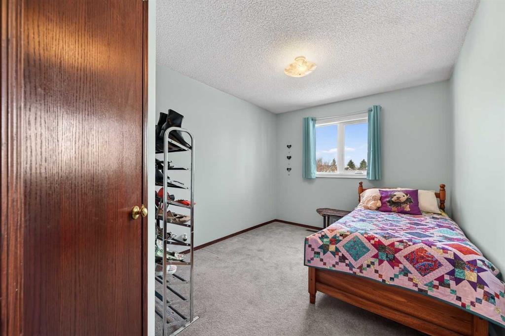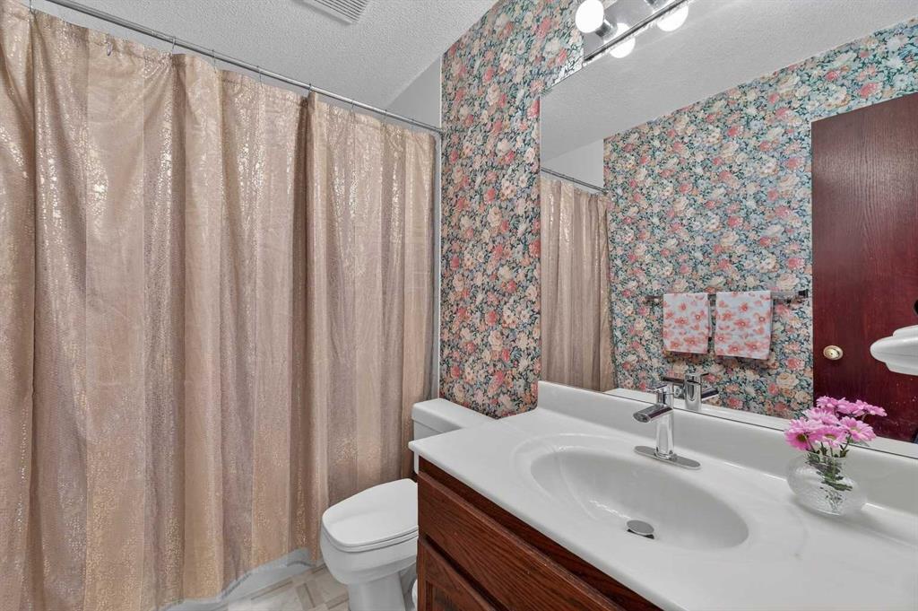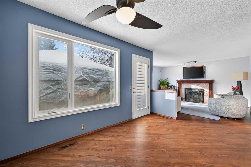 OPEN HOUSE SAT MARCH 7 1:00-4:00. Welcome to this wonderful family home tucked away on a quiet street with 2 Playgrounds just steps away. This home has 1,910 ft2 of developed living space including 4 bedrooms, all upstairs! As you enter in the front door you are greeted by an open front foyer that is flanked by an office/family room on one side and the laundry room and powder room on the other. Rich hardwood flooring flows throughout the main level from the front door to the kitchen, dining area and living room. Perfect layout for entertaining and enjoying family time. The kitchen has stainless steel gas stove, refrigerator and dishwasher and a large walk in pantry. The island has plenty of cupboards and counter space for preparing food and storing the appliances and extra dishes. The newly painted living room is flooded with natural light and fresh air from the large venting windows. The wood fireplace with mantle comes with a gas log lighter. The dining area can accommodate a large family sized table and is conveniently located next to the door to back deck and BBQ area. Upstairs you will be thrilled to find 4 bedrooms. The primary suite is huge with an extended room boasting a downtown Calgary view! This space is perfect for an exercise area or quiet space to enjoy a book. The bedroom will fit all your king sized furniture and has a walk in closet and 4 piece ensuite with a jetted bathtub, shower, water closet and sink vanity. The other three bedrooms are all a generous sizes with big closets and share a 4 piece bathroom. The unfinished basement is awaiting your development ideas, if you need extra finished space. This property has a large fenced, beautifully landscaped yard with gardens and a deck with a pergola that is great in the summer and has a cover for use in the winter also! The garden shed is perfect for storing your outdoor tools. Recent updates include; ALL POLY B HAS BEEN REPLACED WITH PEX PLUMBING – 2026, DISHWASHER – 2025, FENCE – 2024, DECK – 2023, GAZEBO – 2023, ALL WINDOWS – 2023, ASPHALT SHINGLES – 2016