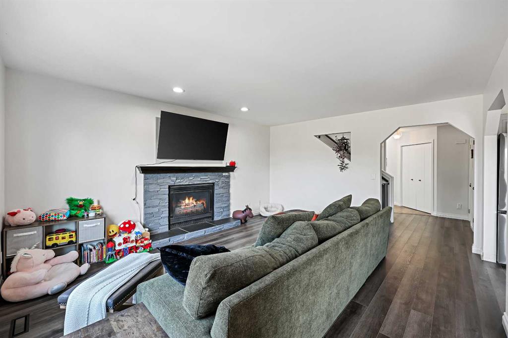 Inside, you’ll be greeted by a bright foyer with soaring ceilings leading to a spacious open concept main floor. The living room showcases a stone faced gas fireplace and large windows that fill the space with natural light. The kitchen is designed for both everyday living and entertaining, featuring stainless steel appliances featuring a Brand New fridge, a central island with seating, a stylish backsplash, and a generous dining area with views of the backyard.