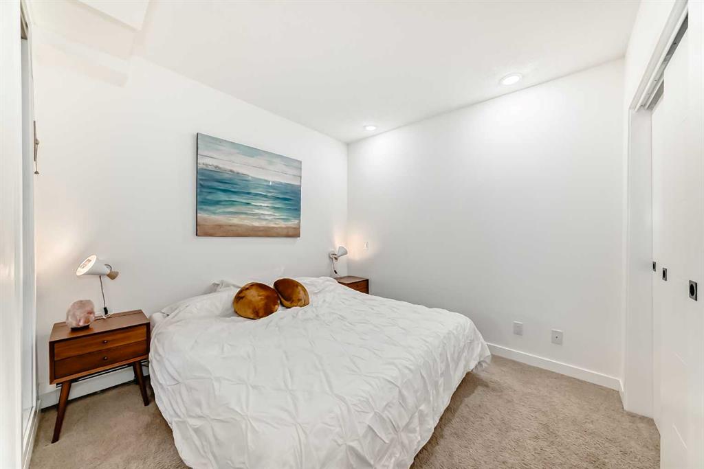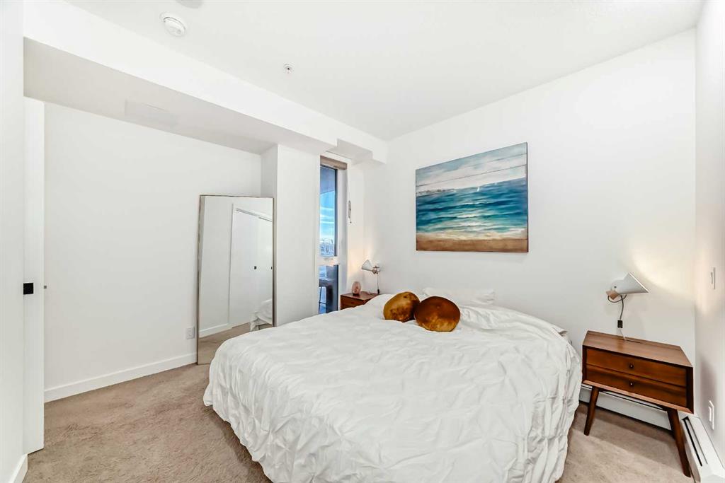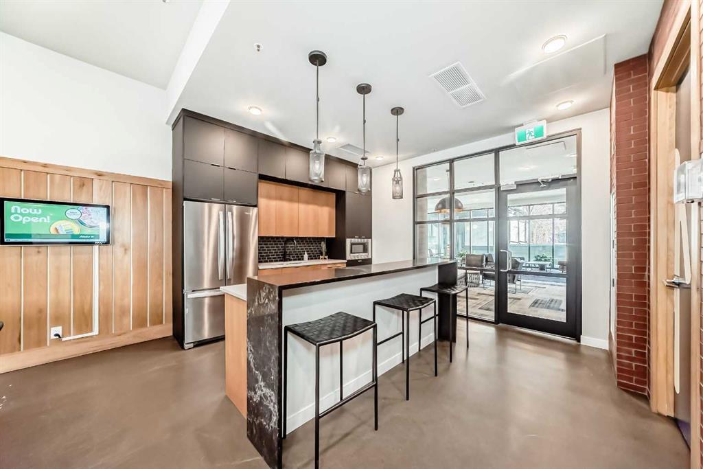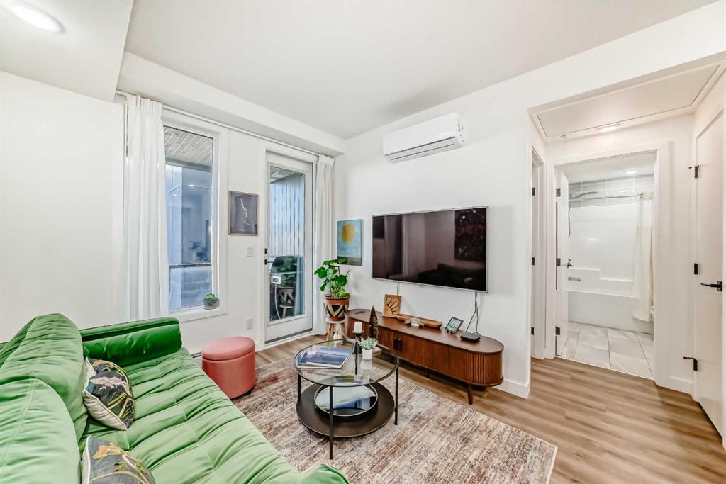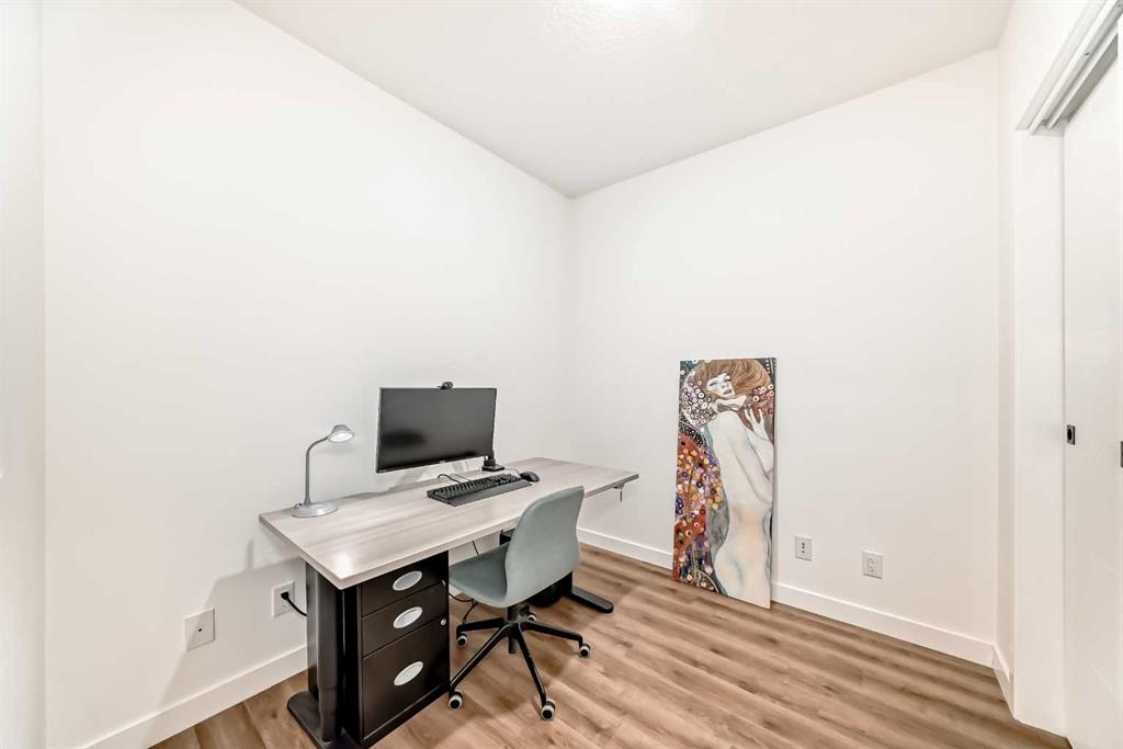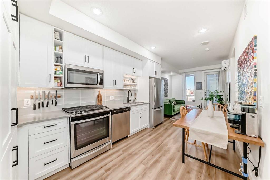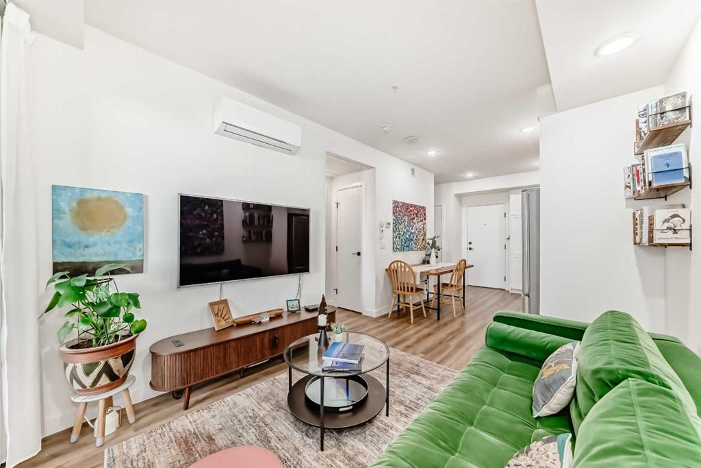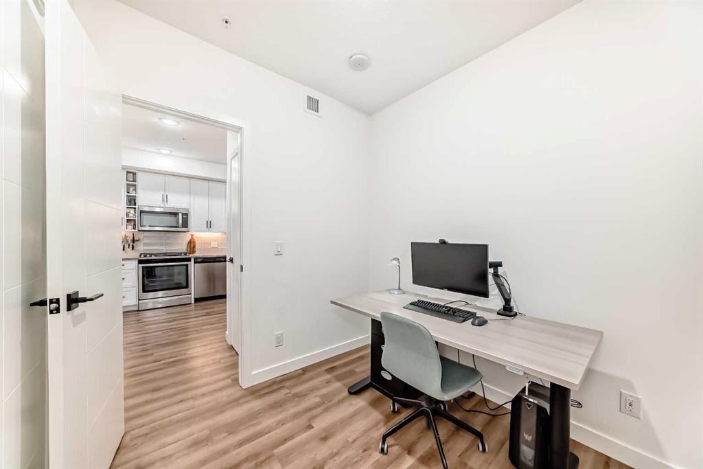 Welcome to this gorgeous 1 bed/1 bath + den unit in the heart of the University District! The unit features an open concept living space w/9′ ceilings, luxury vinyl plank throughout the living space and loads of light through the large windows. The kitchen/dining features gorgeous white cabinetry, quartz counters, gas range, stainless appliances and enough space for a farm style table. The living area is great for entertaining, with mini split AC for the summer and walks out to a good sized balcony with extra storage & gas line for your BBQ., perfect for al fresco dinners The good sized primary bedroom has room for a king sized bed and amazing closet fitted with California Closet built ins. The den/office is great for those who work or study from home & also feature closet built ins. The bright 4 piece bath & in unit laundry complete the property. As well, there is one titled parking spot and an assigned storage unit, underground visitor parking, bike storage & car wash. The August in University District features a warm contemporary lobby and large common room w/kitchen, perfect for celebrating with family & friends. The building is ideally located next to the Alt Hotel by Le Germaine & Charcut restaurant, one block from the Children’s Hospital, just blocks from U of C, and a quick walk to Save On, Cineplex cinemas, fitness centres, and many more restaurants & services. As well, it’s close to the Bow River, Bowness Park, the Calgary Farmers Market and Winsport., and an easy jaunt out to the mountains. Book your showing today!