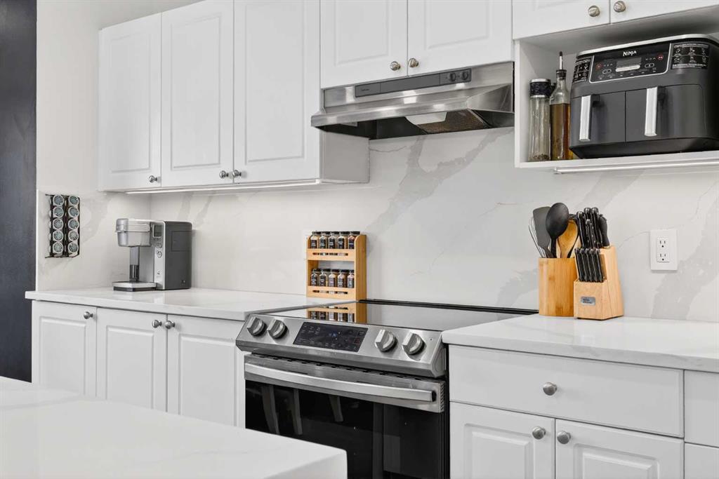 Open House Sunday April 12th 11:00 am – 1:00pm. Start each day on the expansive south-facing front porch where sunshine and neighborhood charm set a welcoming tone. Positioned kitty-corner to a green space and a walking path, this move-in ready home blends everyday comfort with immediate access to outdoor enjoyment. Step inside to an open-concept main level where durable laminate flooring and added pot lighting enhance both function and brightness. Relaxation is invited in the living area where oversized windows draw natural light inward, shaping a comfortable setting suited to quiet evenings or time spent with guests. Effortlessly prepare meals in the beautiful, chef’s dream kitchen where quartz counters, a waterfall island and stainless-steel appliances bring together style and practicality. Hosting is simplified in the adjacent dining area that keeps conversation flowing while maintaining clear sightlines across the main level. Daily routines are easily organized at the rear mudroom, where a privately tucked away powder room lets you easily clean up upon entry. The laminate flooring carries through to the upper level with no carpet, contributing to easy maintenance and a cohesive look. At the end of the day, recharge in the primary retreat that accommodates a walk-in closet and a private ensuite for a true owner’s escape. Two additional bedrooms introduce flexibility for family living, overnight visitors or a dedicated workspace, while a full 4-piece bathroom completes the upper level. Plan future possibilities in the unfinished basement that presents generous storage along with space ready for customization. Enjoy time spent outdoors on the large 2-tier deck that encourages barbecues and seasonal downtime while the fenced yard gives kids and pets room to play freely. Park vehicles securely in the double detached garage accessed from the paved back lane, adding everyday convenience. Phenomenally located within walking distance to nearby shops, pathways and parks while quick connections to schools and Yankee Valley Boulevard support an easy commute. Truly an outstanding location for this beautiful, move-in ready home!