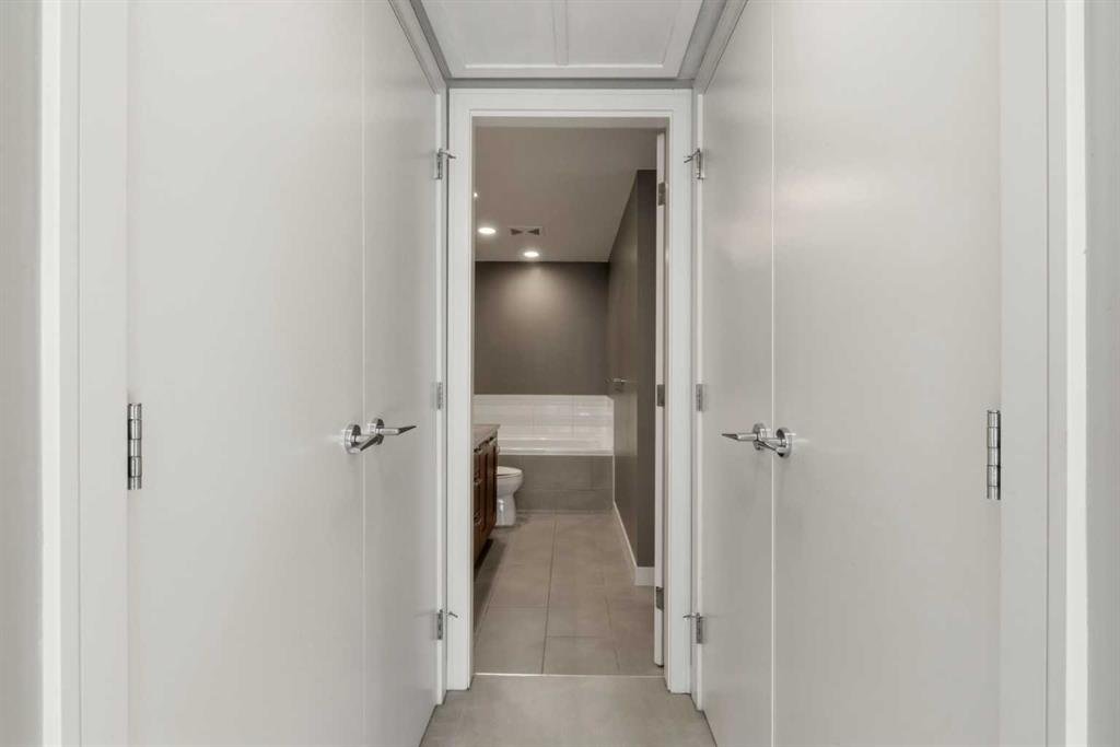 Step into elevated inner-city living in the sought-after Flats Tower at Waterfront, where contemporary design meets everyday comfort in one of Calgary’s most vibrant downtown settings. This well-appointed 2 bedroom, 2 bathroom condo offers a bright, airy layout enhanced by soaring 9-foot ceilings and expansive floor-to-ceiling windows that flood the space with natural light while showcasing dynamic city surroundings. Designed with both style and functionality in mind, the open-concept living space flows seamlessly from the kitchen to the dining and living areas, creating an inviting environment for entertaining or unwinding at home. The sleek kitchen is beautifully finished with quartz countertops, a generous central island, full-height cabinetry, and a premium stainless steel appliance package that will impress any home chef. Clean lines and modern finishes throughout add to the home’s refined yet comfortable appeal. Both bedrooms are thoughtfully positioned to provide privacy and flexibility, ideal for professionals, small families, or guests. The primary suite offers a relaxing retreat, while the second bedroom works perfectly as a guest room or home office. Additional highlights include in-suite laundry, air conditioning for year-round comfort, an assigned parking stall, and a dedicated storage locker for added convenience. Residents of Waterfront enjoy access to an exceptional collection of resort-inspired amenities that enhance daily living. From professional concierge service and a fully equipped fitness centre to a rejuvenating hot tub and sauna, every detail is designed to support a balanced lifestyle. Entertain friends in the social lounge, host movie nights in the private theatre, or unwind outdoors in the beautifully landscaped garden patio. Visitor parking and an on-site car wash further add to the ease of ownership. Perfectly situated along the Bow River, this prime location offers direct access to scenic walking and cycling pathways, with Princess Island Park just moments away. Enjoy the convenience of being within walking distance to downtown offices, Chinatown, Eau Claire Market, East Village, and an array of shops, cafés, and restaurants that define Calgary’s urban experience. Whether you’re a first-time buyer seeking a sophisticated start, a professional craving walkable city living, or an investor looking for a desirable addition to your portfolio, this impressive condo delivers an exceptional opportunity to experience the best of waterfront living in the heart of the city.