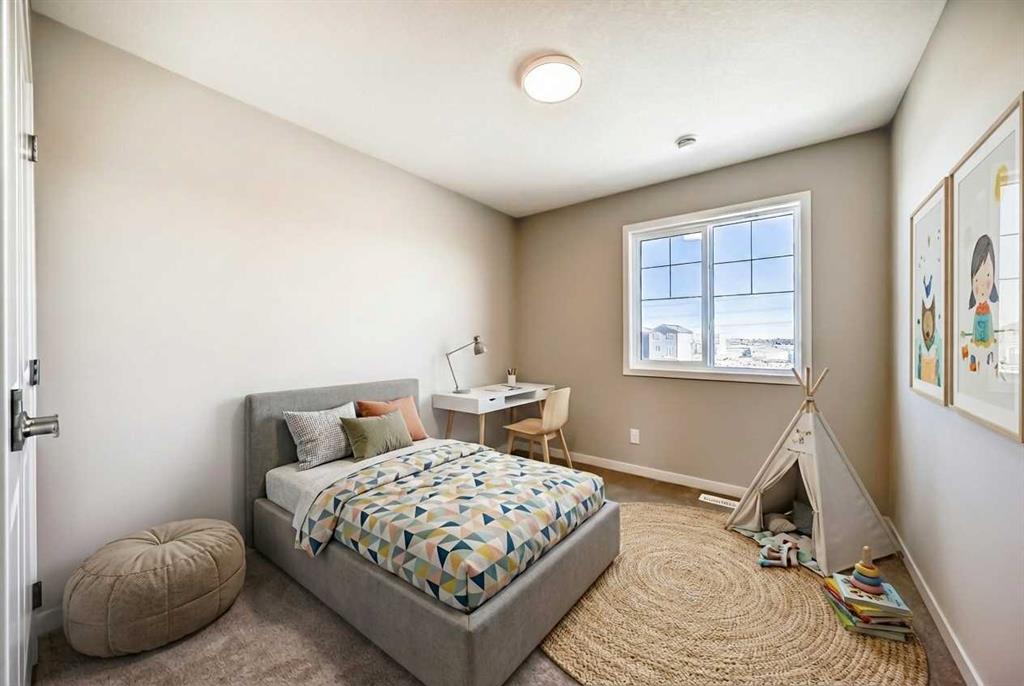 Meet the brand-new “Heath,” a fresh take on a beloved layout that blends smart design with everyday comfort—now in Hotchkiss. Step inside to a bright, open main floor finished in warm luxury vinyl plank, with a versatile front flex room that’s perfect for a home office, homework zone, or cozy reading nook. The rear of the home opens up beautifully to an inviting living room and an oversized dining area—ideal for weeknight dinners, hosting friends, and everything in between. At the heart of it all, the chef-inspired kitchen delivers the look buyers love: wood-grain cabinetry extended to the bulkhead, crisp white quartz countertops, a timeless subway tile backsplash, stainless steel appliances, a convenient microwave-over-the-range, and a large island that makes prep, snacks, and conversation effortless. A generous rear window pulls in great natural light, and the practical back entry keeps daily comings and goings organized and easy. Upstairs, a centrally located loft creates a true second living space—perfect as a TV zone, play area, or quiet spot to unwind—while also providing smart separation between bedrooms. The spacious primary retreat includes a walk-in closet and a spa-inspired 4-piece ensuite with dual sinks. Two additional bedrooms are nicely sized and share a well-appointed 4-piece bath, while the upper laundry room keeps chores convenient (and out of sight). A side/secondary entrance adds valuable flexibility for future possibilities like a guest space, in-law setup, or private lower-level living area (subject to city/municipal approvals and permitting). Outside, the landscaping is complete—front and back—so you can enjoy the home from day one, with finished sod, mulched side yards, and thoughtfully selected trees and shrubs that elevate curb appeal. And the setting ties it all together. Hotchkiss is designed around wide-open skies, connected green spaces, and everyday convenience—highlighted by a central wetland with boardwalks and a planned network of parks and pathways. You’ll love the quick access to major routes like Stoney Trail and 22X, plus nearby shopping, schools, and amenities, with Seton and the South Health Campus just minutes away. From morning walks to relaxed evenings at home, the Heath in Hotchkiss offers a lifestyle that’s easy to settle into and hard to outgrow.