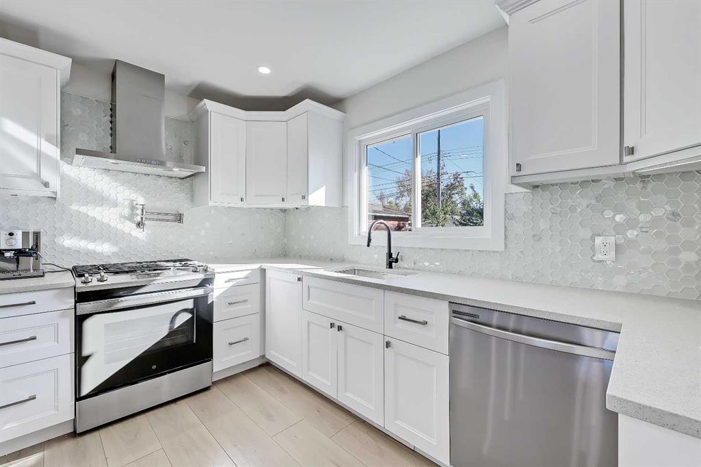 This beautifully renovated bungalow on a sunny corner lot in Varsity is the kind of home that instantly stands out! With timeless curb appeal, central A/C, a bright open layout, and a 2-bedroom basement illegal suite with an additional 3 bedrooms on the main floor, it offers incredible flexibility for families or investors alike. Inside, the living room features an elegant, tiled fireplace wall and a large picture window, flowing effortlessly into a stylish dining nook and a show-stopping kitchen with quartz countertops, a central island, stainless steel appliances, a gas range with pot filler, and a glass tiled backsplash. Three spacious bedrooms and a spa-inspired 4-piece bath complete the main level. Downstairs, the well-designed basement illegal suite includes a full kitchen, a cozy rec room with a gas fireplace, two bedrooms, and a 4-piece bath—perfect for multi-generational living or rental income. Enjoy a large, fenced yard, rear deck, and single detached garage with additional covered parking for two vehicles, which could be converted into a full garage if desired. Thoughtful updates over the years include new appliances (2023) and central A/C (2024) on the main floor, new furnace (2020), new water tank (2020), new 100-amp panel (2021), and new roof (2017 house / 2021 garage). Located close to Market Mall, U of C, parks, and top-rated schools in the highly desirable community of Varsity.