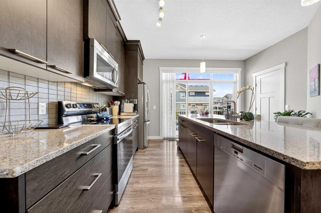 Pride of ownership by the Original Owners is evident in this meticulously maintained 2-storey townhome. Located in the family-friendly community of Evanston, this beautiful home offers an open-concept layout and thoughtful designs combining style, comfort, and functionality throughout. The main floor features 9-foot ceilings and a bright, flowing layout with the Living Room at the front, followed by the Dining area and Kitchen. The Kitchen is equipped with a central island with granite countertops, Extended Height Cabinets for maximum storage, Stainless Steel Appliances, and access to a Private Balcony with gas hookup – perfect for summer BBQs!