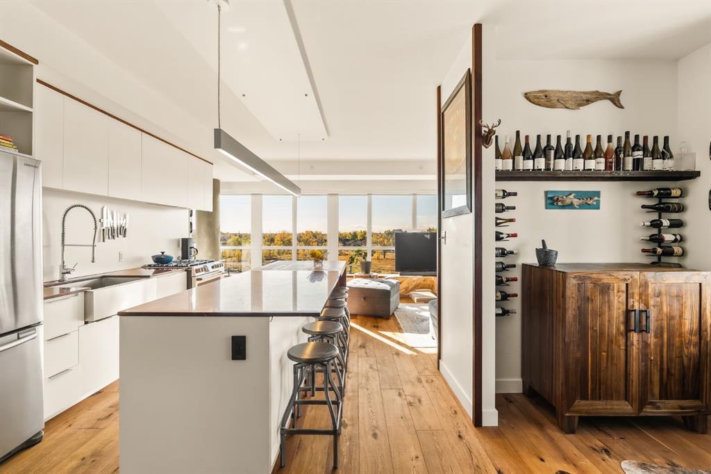**OPEN HOUSE SATURDAY OCTOBER 25TH 1-3 PM** In Calgary’s most storied neighbourhood, where the Bow River bends around tree-lined paths and history meets creativity, lies a home that captures the essence of bespoke living. This remarkable SoBow residence, featuring one of the most desirable floor plans in the entire complex, is not just a place to live, it’s a work of art shaped by craftsmanship, texture, and intention.