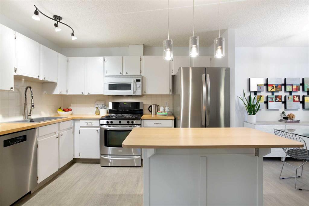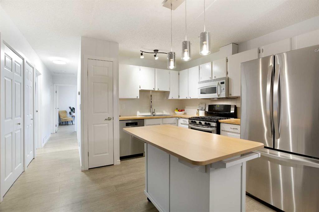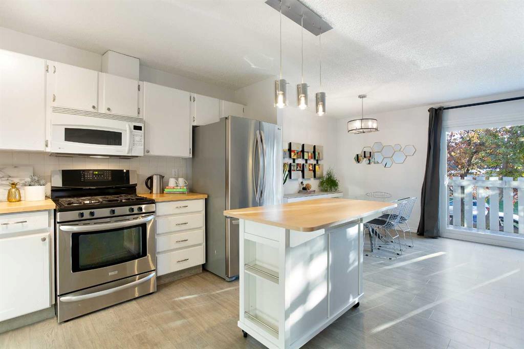 Inside, the home feels bright and welcoming with over 1,900 square feet of total living space and a layout designed for living! The main floor features stylish luxury vinyl flooring and an open-concept living area anchored by a classic wood-burning fireplace — the perfect spot to unwind on a cool Calgary evening. The kitchen offers plenty of workspace with Butcher block counters, white cabinets, stainless steel appliances, and a gas stove ready for serious cooking.