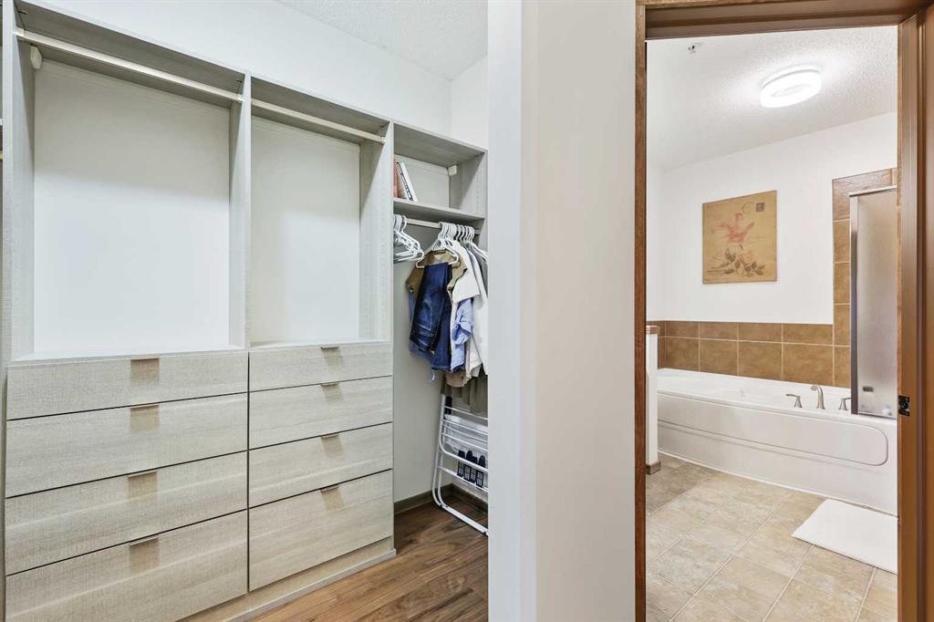 “Welcome to our Tree House” is the slogan hanging above the South and West facing Penthouse windows, which offer breath taking views of Griffith Woods and the Elbow River Valley. This 2 bedroom, 2 bath 1031 square foot, totally renovated condo, is in pristine condition. Upgrades include Engineered wood floors, granite counter tops, new lighting fixtures, built in shelving in the ensuite walk in closet, new baseboards and trim, a rock faced gas fireplace with mantle, and all the appliances have been replaced. The Wedgewoods is a concrete structure with condo fees that include all utilities including electricity. The condo’s titled parking stall has a full wire cage for storage. Backing on to Griffith Woods, this condo has its own wildlife sanctuary, with deer roaming throughout the 93 acre protected reserve area located next to the Elbow River. A hiker’s paradise, you are 3 minutes from the Elbow River pathway system. Discovery Ridge is a quiet, secluded area with easy access to shopping, schools and city transit. It is like living in Canmore yet 15 minutes to downtown. Mount Royal University and the Rockyview Hospital are less than 10 minutes away and you can be out of the city and on your way to Banff in minutes. Amenities include a gym and community room in Building 30. The recently completed Calgary Ring Road gives you easy access to all quadrants of the city. The Discovery Ridge community area is located right behind the Wedgewoods with a children’s playground, tennis courts, soccer fields, skating/hockey rink, basketball court – all maintained by the Discovery Ridge Community Association.
