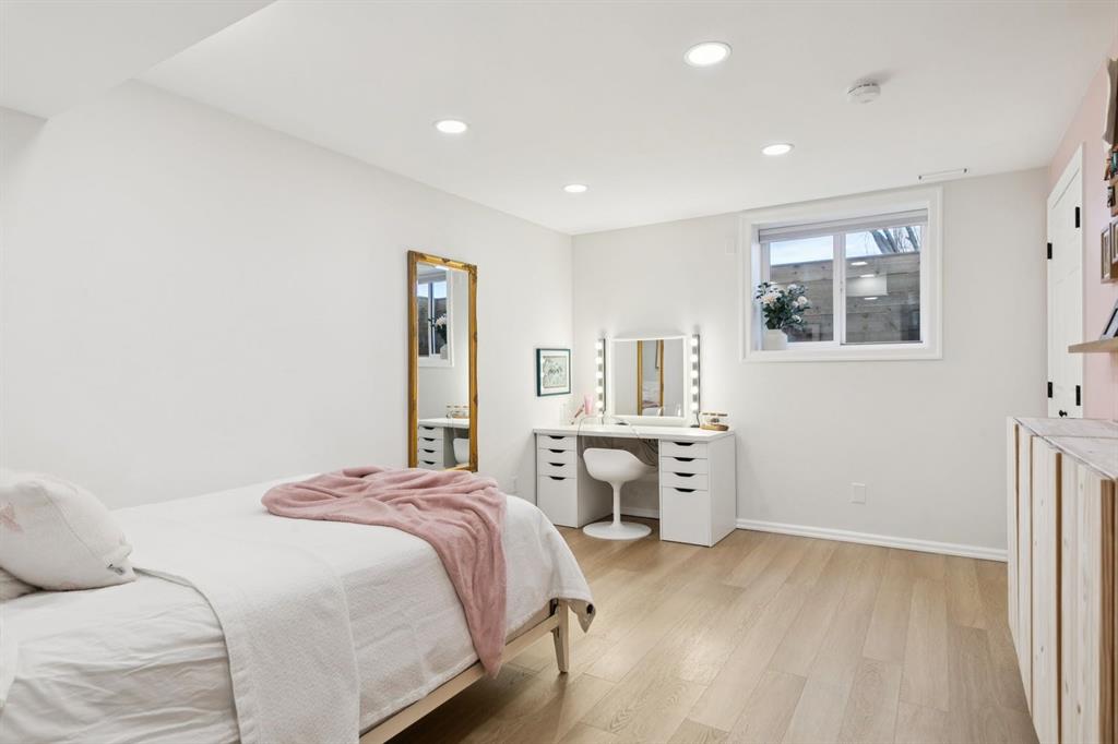 Meticulously maintained and thoughtfully updated R-2000 energy-efficient infill located on a quiet tree lined street in Windsor Park is perfectly positioned, directly across from a green space and school. This immaculate 1,645 sq. ft., 4-bedroom home built by McVean Construction, known for quality and attention to detail, offers a bright and functional layout with south exposure and an abundance of natural light. The entire home features luxury vinyl plank flooring. The spacious kitchen with quartz countertops, central island, and generous dining area, features large south windows overlooking the backyard. Updated laundry, with new washer and dryer, and a 2-piece bath round out the main level. Upstairs has three bedrooms, with the primary having an ensuite, walk-in closet and jetted tub. The fully finished lower level offers a large bedroom with walk-in closet, a 3-piece bathroom, and a versatile recreation room or office, providing substantial additional living space. All bathrooms have been beautifully remodeled, and the home has been thoughtfully upgraded with newer PEX plumbing, on-demand hot water, and a high-efficiency furnace, adding long-term comfort and peace of mind.