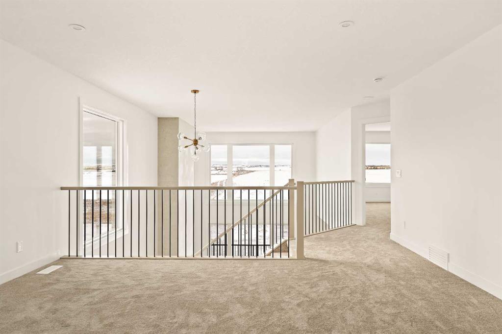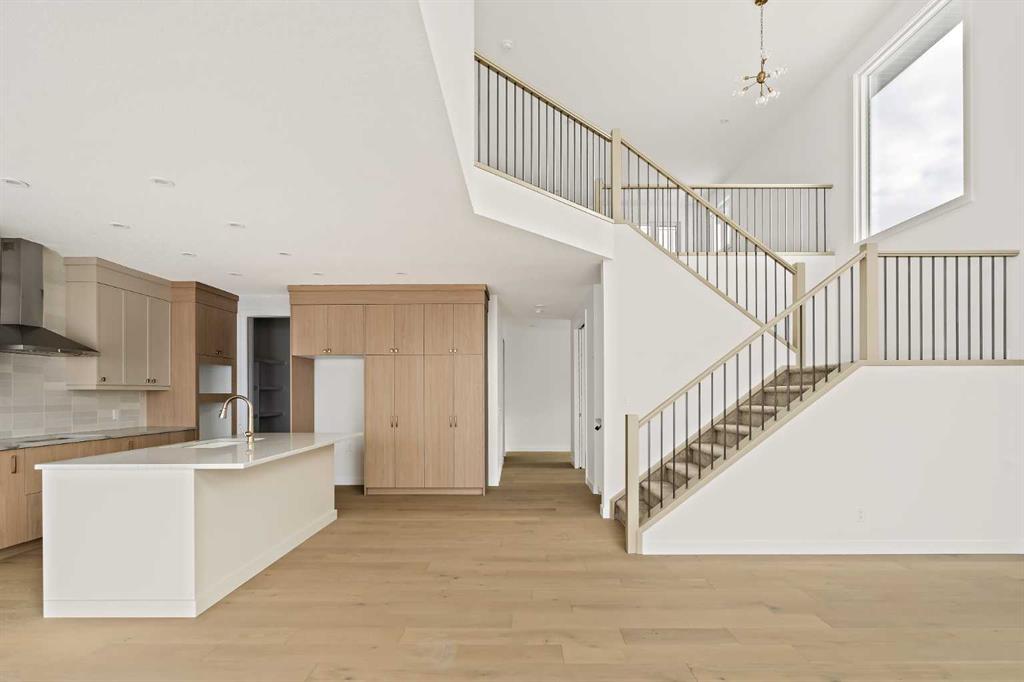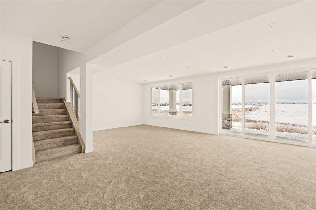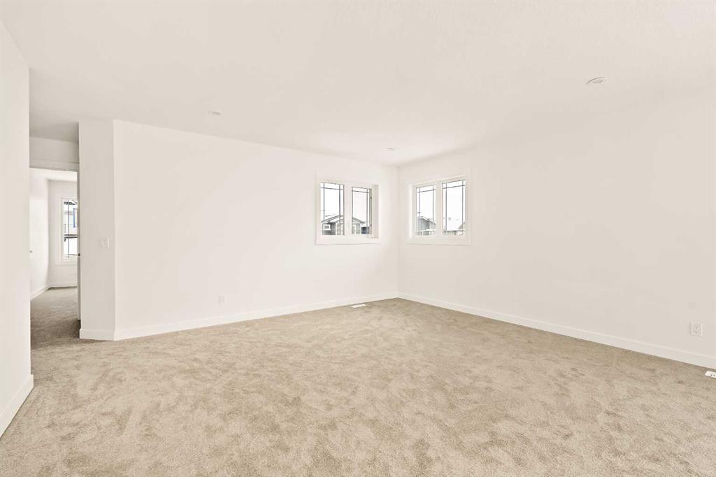 The stunning Savona 3 Estate model by Brookfield Residential is now available in the community of Livingston. Situated on a premium walkout lot backing directly onto green space, this home offers the rare luxury of no neighbours directly behind. This fully developed residence features 4 bedrooms, 3.5 bathrooms, 3 spacious living areas, and a dedicated office, offering the perfect blend of design, functionality, and high-end finishes. Set on a 4,844 sq. ft. east-facing lot, this beautiful property boasts over 3,500 sq. ft. of developed living space across three levels. The main floor features a bright, open-concept layout with 9’ ceilings, 8′ doors and hardwood flooring throughout. Expansive rear-facing windows flood the home with natural light throughout the day, creating a warm and inviting atmosphere. The gourmet kitchen is equipped with full-height cabinetry and a premium suite of stainless-steel appliances, including a gas cooktop, chimney-style hood fan, built-in wall oven and microwave, and a French-door refrigerator. A large walk-through pantry adds both functionality and additional storage. The kitchen flows seamlessly into the adjacent dining area, which easily accommodates a full-sized dining set, and the impressive rear great room featuring an open-to-above design and a full-height tiled gas fireplace overlooking the backyard. Completing the main level is a generous front foyer, a versatile office/flex room, a 2-piece powder room, and a rear mudroom with a large walk-in closet for added storage. Upstairs, the primary suite (14’ x 13’) overlooks the backyard and includes a spa-inspired ensuite with a fully tiled glass shower, deep soaker tub, dual sinks, and a walk-in closet complete with storage. Two additional bedrooms, a well-appointed 4-piece bathroom, a large bonus room, and an upper-level laundry room complete this floor. The fully developed walkout basement adds nearly 1,000 sq. ft. of additional living space, including a fourth bedroom, full bathroom, and a bright recreation/media room with large windows. A wet bar and flexible open area make this an ideal space for a home gym, playroom, or entertainment zone. The west-facing backyard offers ample space for children, pets, and outdoor entertaining. A triple-car garage completes the property, providing exceptional storage and secure parking year-round. Backed by Brookfield’s comprehensive builder warranty and the Alberta New Home Warranty Program, this move-in-ready home offers both quality and peace of mind. Located in the vibrant community of Livingston, residents will enjoy access to parks, pathways, and future commercial amenities.