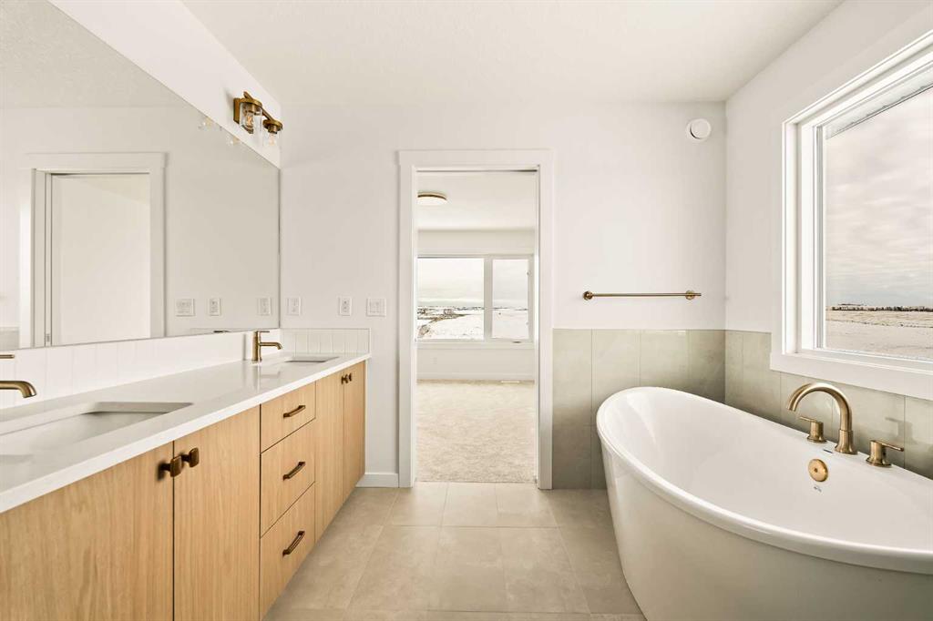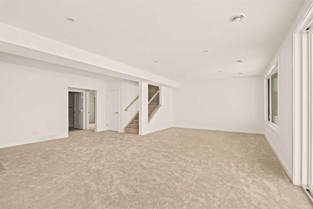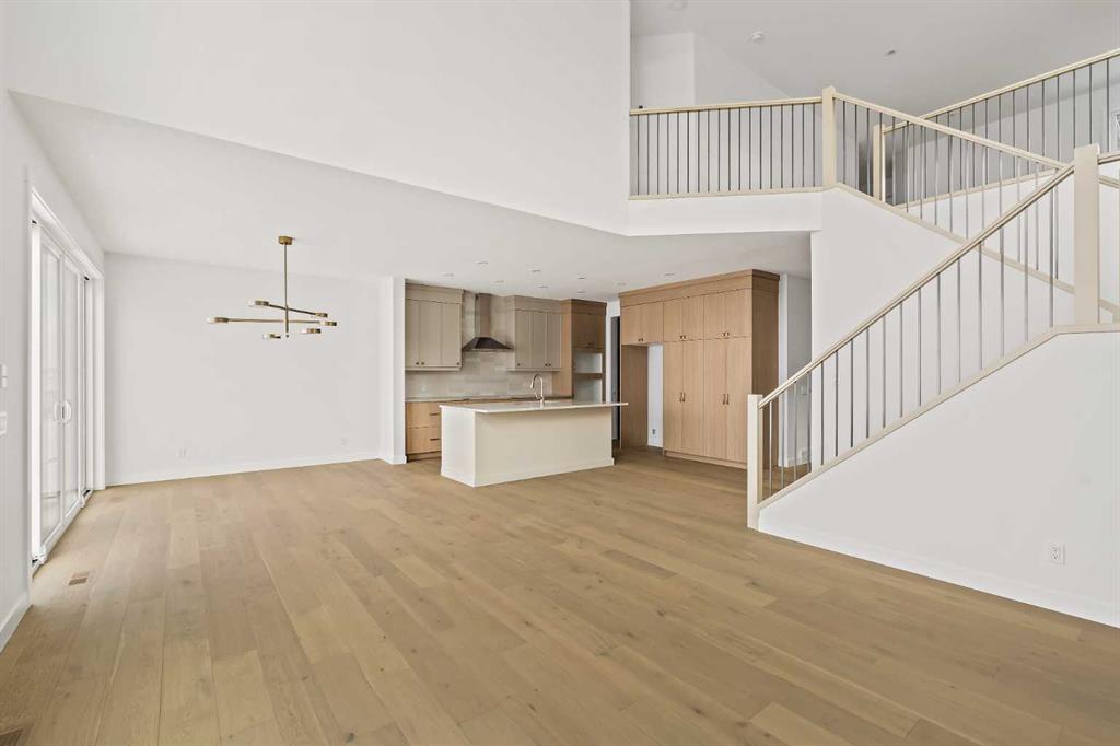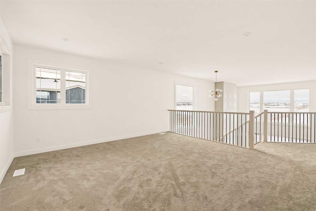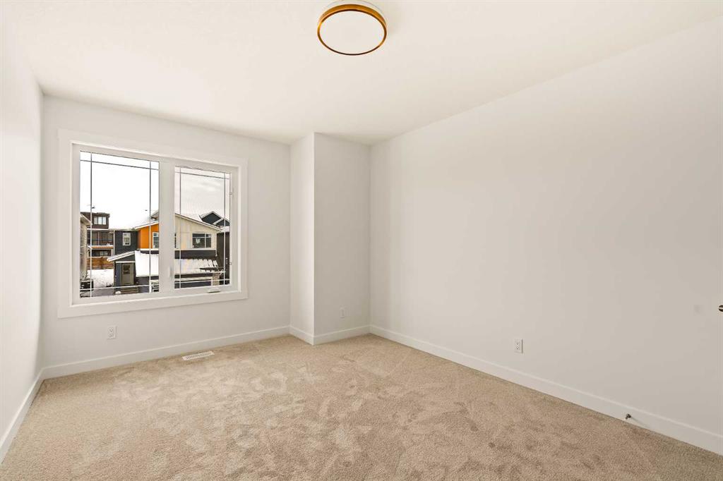 The stunning Savona 3 Estate model by Brookfield Residential is now available in the community of Livingston. Situated on a premium walkout lot backing directly onto green space, this home offers the rare luxury of no neighbours directly behind. This fully developed residence features 4 bedrooms, 3.5 bathrooms, 3 spacious living areas, and a dedicated office, offering the perfect blend of design, functionality, and high-end finishes. Set on a 4,844 sq. ft. east-facing lot, this beautiful property boasts over 3,500 sq. ft. of developed living space across three levels. The main floor features a bright, open-concept layout with 9’ ceilings, 8′ doors and hardwood flooring throughout. Expansive rear-facing windows flood the home with natural light throughout the day, creating a warm and inviting atmosphere. The gourmet kitchen is equipped with full-height cabinetry and a premium suite of stainless-steel appliances, including a gas cooktop, chimney-style hood fan, built-in wall oven and microwave, and a French-door refrigerator. A large walk-through pantry adds both functionality and additional storage. The kitchen flows seamlessly into the adjacent dining area, which easily accommodates a full-sized dining set, and the impressive rear great room featuring an open-to-above design and a full-height tiled gas fireplace overlooking the backyard. Completing the main level is a generous front foyer, a versatile office/flex room, a 2-piece powder room, and a rear mudroom with a large walk-in closet for added storage. Upstairs, the primary suite (14’ x 13’) overlooks the backyard and includes a spa-inspired ensuite with a fully tiled glass shower, deep soaker tub, dual sinks, and a walk-in closet complete with storage. Two additional bedrooms, a well-appointed 4-piece bathroom, a large bonus room, and an upper-level laundry room complete this floor. The fully developed walkout basement adds nearly 1,000 sq. ft. of additional living space, including a fourth bedroom, full bathroom, and a bright recreation/media room with large windows. A wet bar and flexible open area make this an ideal space for a home gym, playroom, or entertainment zone. The west-facing backyard offers ample space for children, pets, and outdoor entertaining. A triple-car garage completes the property, providing exceptional storage and secure parking year-round. Backed by Brookfield’s comprehensive builder warranty and the Alberta New Home Warranty Program, this move-in-ready home offers both quality and peace of mind. Located in the vibrant community of Livingston, residents will enjoy access to parks, pathways, and future commercial amenities.