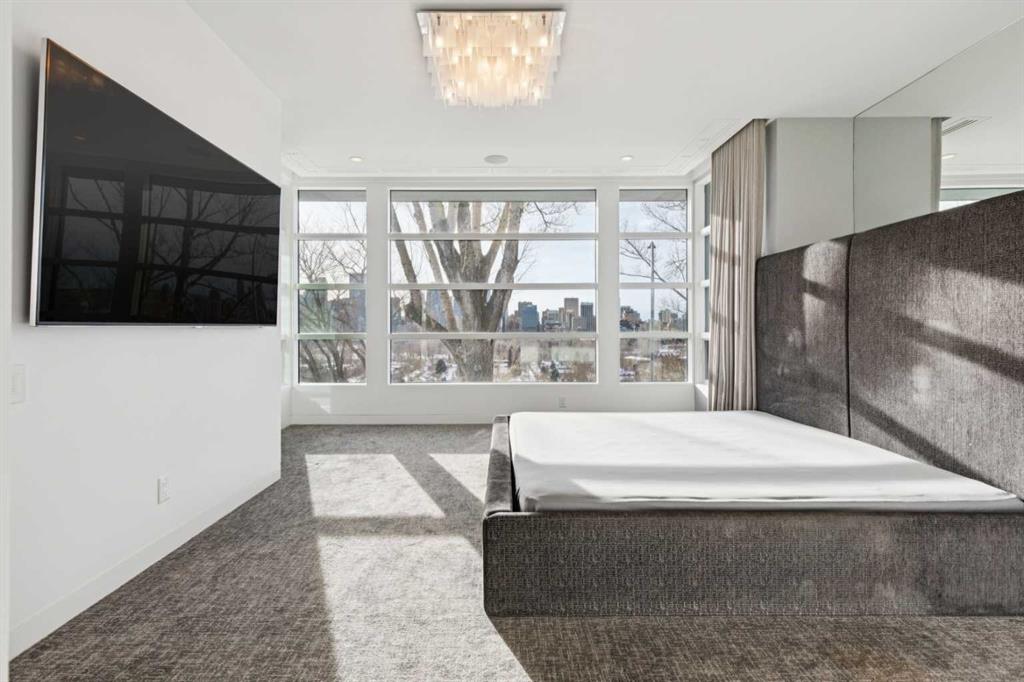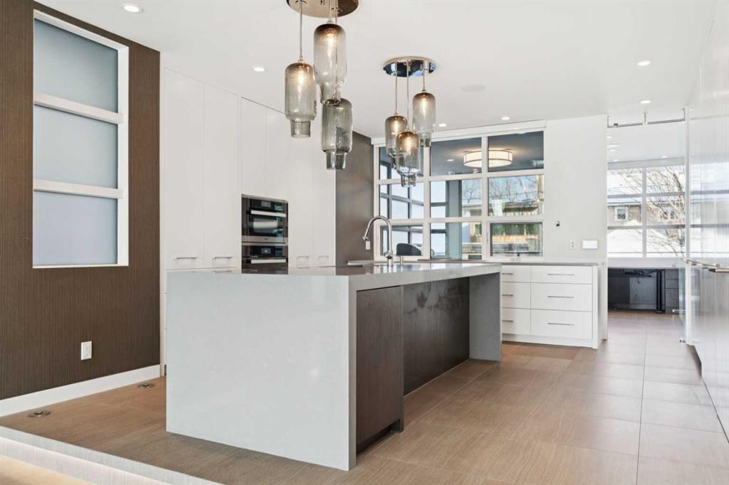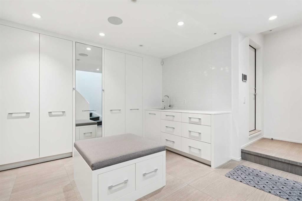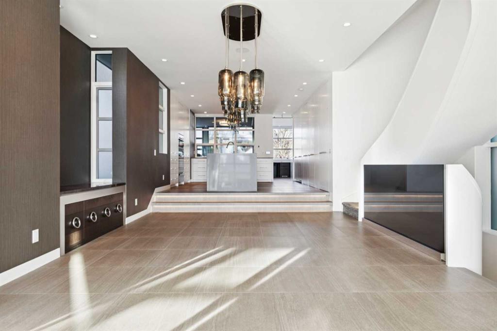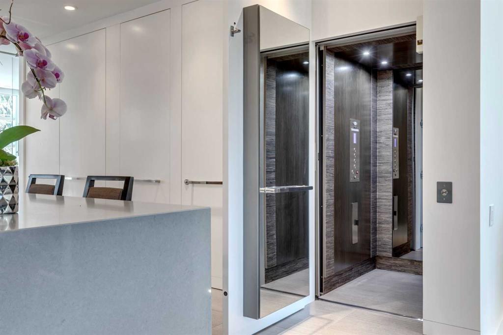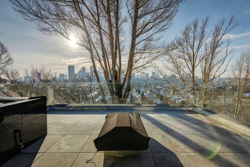 OPEN HOUSE SATURDAY JAN 31, 1-3pm. A world-class contemporary residence on prestigious Crescent Road, offering breathtaking panoramic city skyline and mountain views from one of Rosedale’s most coveted blocks, surrounded by estates valued up to $20M. Masterfully conceived by renowned architect Sean McCormick and designer Paul Lavoie, this exceptional home delivers nearly 4,000 sq ft of uncompromising luxury—perfectly suited to couples, empty nesters, or discerning singles. An elevator connects all levels, making this an ideal alternative for condo or townhouse buyers seeking space without compromise. Exquisite bespoke detailing defines the home, with integrated casings and baseboards, architectural light channels, ceiling-height custom doors, and a striking sculptural staircase—every element thoughtfully designed and flawlessly executed. The main living level features soaring 10′ ceilings and full-height Austrian Reynaers sliding doors opening to a generous view terrace with fireplace. A subtle elevation change toward the rear preserves sightlines from the elegant dining area and the sleek, modern kitchen, complete with quartz waterfall island, abundant storage, and a premium Miele appliance package. A double office with adjustable-height desk and a discreet powder room complete this level, along with access to a powered-screen three-season room. The second level is anchored by a stunning primary suite with city views framed by huge windows, a spacious dressing room, and a spa-like ensuite with dual vanity, oversized shower, freestanding tub, and private water closet. A generous laundry room and a second bedroom with ensuite complete the floor. The top level offers a sprawling media lounge with home theatre, wet bar with Sub-Zero fridges and access to a private south-facing terrace with flame table and spectacular mountain and city views. A third bedroom and full bath are also located on this level. The lower level is currently configured as a gym with adjacent bathroom featuring a steam shower. A huge and well-appointed mudroom connects to the immaculate double garage with EV charger. Infrastructure highlights include in-floor heating on the main and lower levels, snow-melt for the driveway, sidewalk, and front terrace, central air conditioning and an Elan home automation system. Perimeter security gates, full alarm system, and cameras ensure peace of mind. Gorgeous professional low-maintenance landscaping completes this exceptional offering. A truly irreplaceable property of remarkable calibre—offered well below replacement cost.