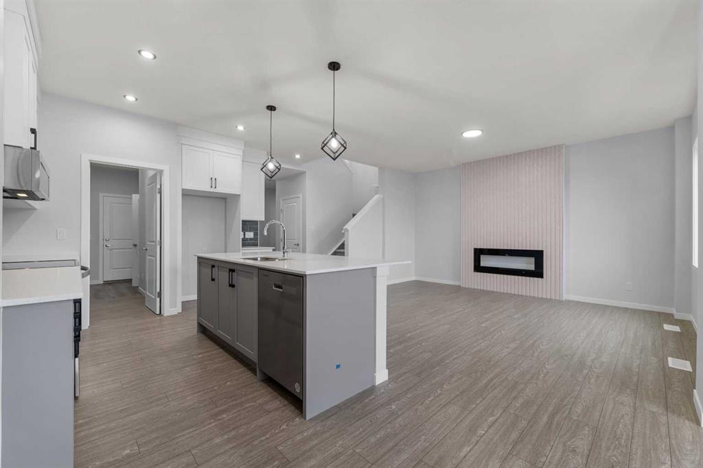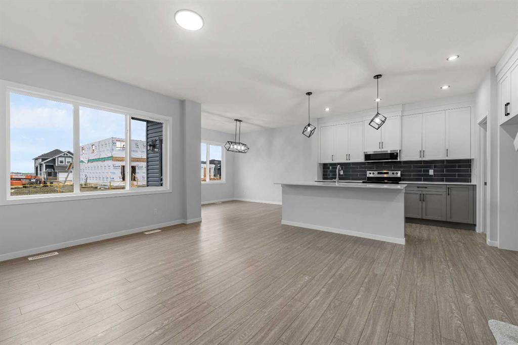 Brand New | Never Occupied | 1,930 SqFt | 3 Beds | 2.5 Baths | Top of the Line Finishes | Sparkling Chef’s Kitchen | Quartz Countertops | Stainless Steel Appliances | Full Height Cabinets | Kitchen Island | Barstool Seating Area | Walkthrough Pantry | Open Floor Plan | High Ceilings | Electric Fireplace | Upper Level Bonus Family Room | Walk-in Laundry Room | Spacious Bedrooms | Side Entry to Basement | Basement Rough-ins | Huge Backyard Space | Front Attached Double Garage | Driveway. Welcome to your gorgeous brand new home boasting 1,930 SqFt throughout the main and upper levels with an additional 787 SqFt in the unfinished basement. This home has expansive living space, high ceilings and large windows. The front door opens to a grand foyer with plenty of space for bench seating! The open concept floor plan makes this the perfect home to host friends and family for dinners and holiday events. The sparkling kitchen is outfitted with full height cabinets, quartz countertops, stainless steel appliances and a centre island with barstool seating. Off the kitchen is a walkthrough pantry that connects to the mud room and interior garage door making your grocery drop easy. The dining and living rooms are framed with large windows filling the home with ample natural light. The dining room is paired with a door that leads to your blank canvas back yard which will be your go to spot for outdoor dining and summer BBQs. The living room is centred with an accent wall and electric fireplace. The main level is complete with a 2pc bath. Upstairs is finished with plush carpet flooring throughout the 3 bedrooms and bonus family room. The primary bedroom is partnered with a walk-in closet and private 3pc ensuite bath. The ensuite has an extended single vanity with great storage below and a walk-in shower. Bedrooms 2 & 3 are both a great size and share the main 4pc bath with a tub/shower combo. The bonus family room is the perfect space to unwind the in evenings with your family. This home’s laundry is located upstairs near all the bedrooms- every home owner’s dream. The walk-in laundry room has wire linen shelves and plenty of space for all cleaning supplies. Downstairs, the unfinished basement has a separate side entry making future development easy! Outside is a great backyard with a blank canvas; customize this space to your family’s needs! The front attached double garage and driveway allows for 4 vehicles to be parked at any time. Hurry and book a showing at your gorgeous brand new home today!