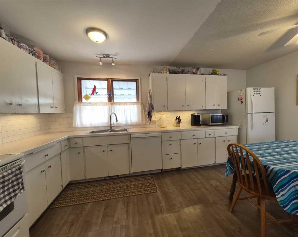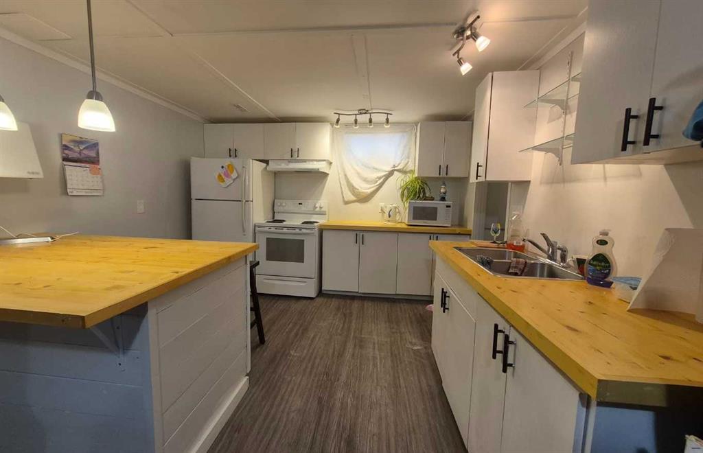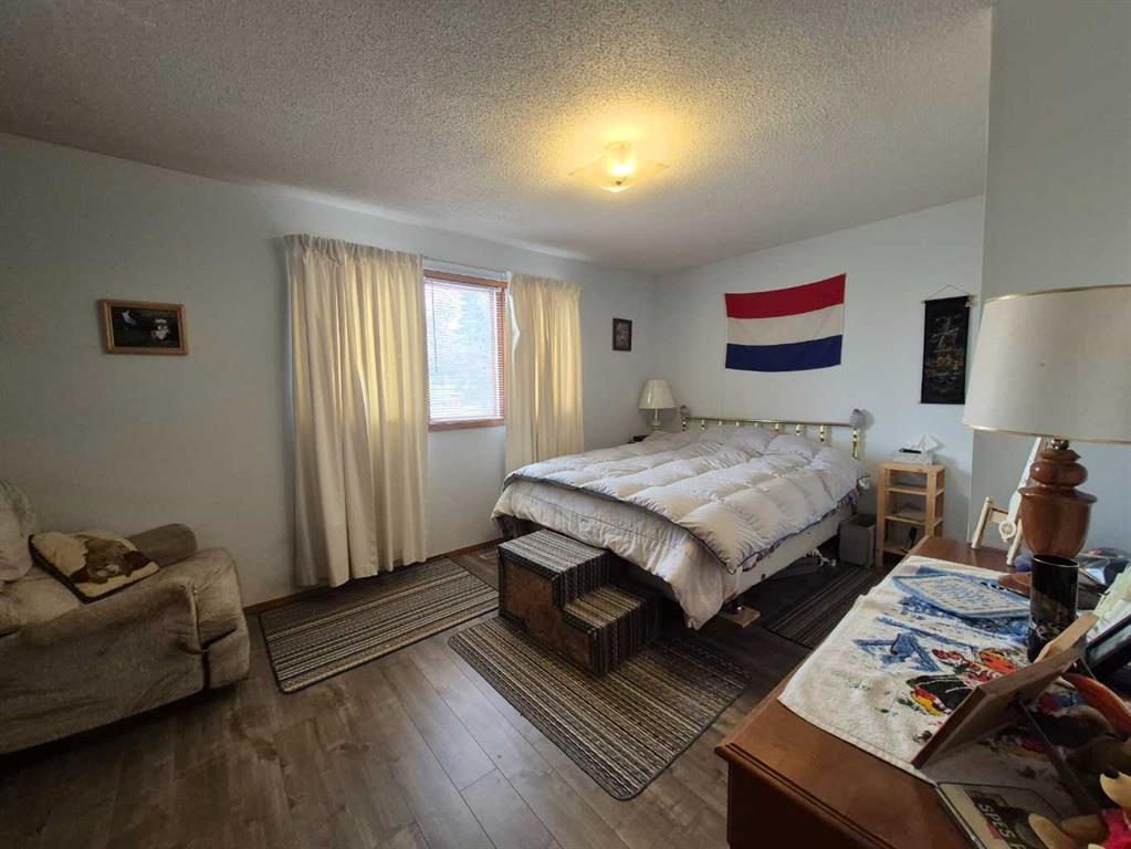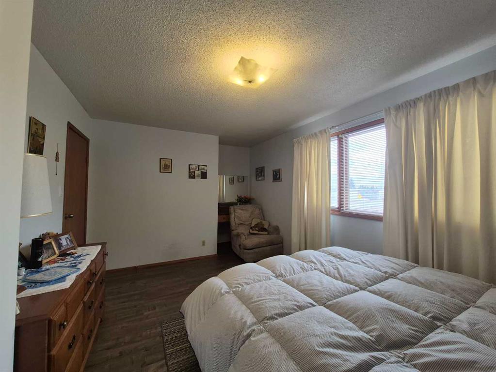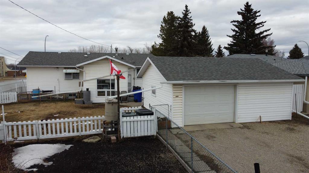 This Olds property gives you just a bit more than average! Situated on a HUGE 65ft x 120ft oversized lot, it offers a south-facing fenced backyard with a garden area waiting for your spring planting. Parking galore – a front driveway for two, (or RV)additional rear off alley parking for two more, plus a double detached garage. A strip of Town greenspace to the west means no sidewalk snow clearing,