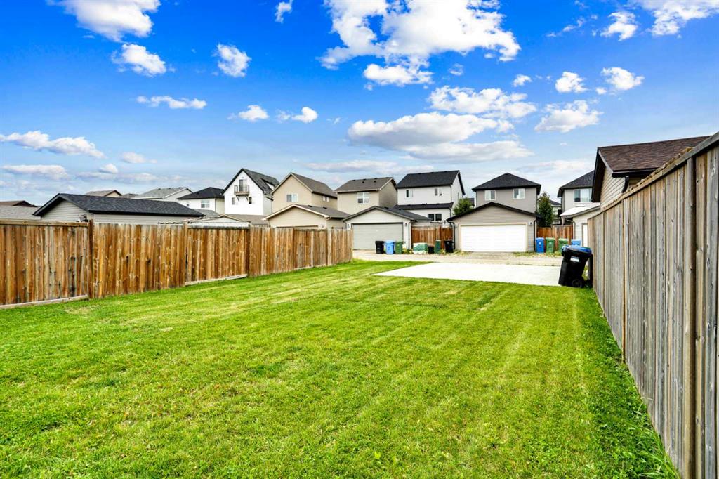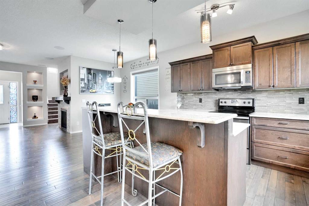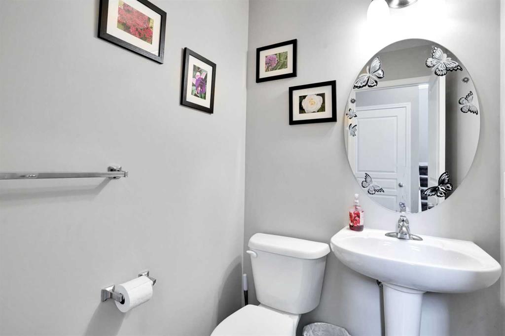 Welcome to this beautiful one owner, move-in ready single family home in the established community of Skyview Ranch. Walk in to a lovely open floor plan, bright with natural light from large windows and from stylish modern lighting on the nine-foot ceilings. Rich hardwood floors accentuate the main-floor living area, with durable and beautiful tile at both front and back entrances. The spacious kitchen includes tons of work and storage space, with a large island, breakfast bar, and ample cabinets, finished with lovely granite countertops and upscale stainless steel appliances. The large walk in pantry and built-in wine rack complete this handsome and practical kitchen. Living room features a gas-burning fireplace , topped by a solid wood mantle with wall mounted television and built-in ceiling speakers. Built-in lighted shelves in the living room highlight your treasures. To complete the main floor, a two-piece bath is located off the living room. Upstairs, the spacious master bedroom looks out over the backyard. It comprises ample space for a king-sized bed, and boasts a lovely ensuite with over-sized soaker tub and walk in closet. There are second and third bedrooms upstairs for the kids or home office. The upstairs also features a four piece main bath and convenient laundry facilities. The home has dual front-door closets and a huge back closet for storage of all your outdoor essentials. An added bonus is central air conditioning. The basement includes rough in for a future bathroom and has unlimited potential for whatever type of additional space your family needs. This home features a large open back yard with poured garage pad saving you the cost while building your own double garage, gas barbecue hook-up on the deck, and side fencing. This home is located in family-friendly Skyview Ranch, near parks, schools, walking paths, transit and amenities, and with easy access to Stoney and Deerfoot Trail.
