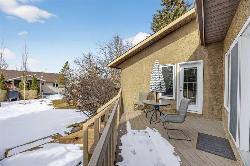The open-concept main floor includes a large living area, kitchen, dining space, and entryway—all freshly painted within the past two years. The spacious kitchen offers plenty of counter space, built-in desk, and room for casual dining. The primary bedroom includes direct access to the rear 18‘10” x 16’0” deck, a 3-piece ensuite with shower, and a walk-in closet. Two additional comfortable bedrooms and a main bathroom with dual sinks, shower, and jacuzzi tub complete the main level.