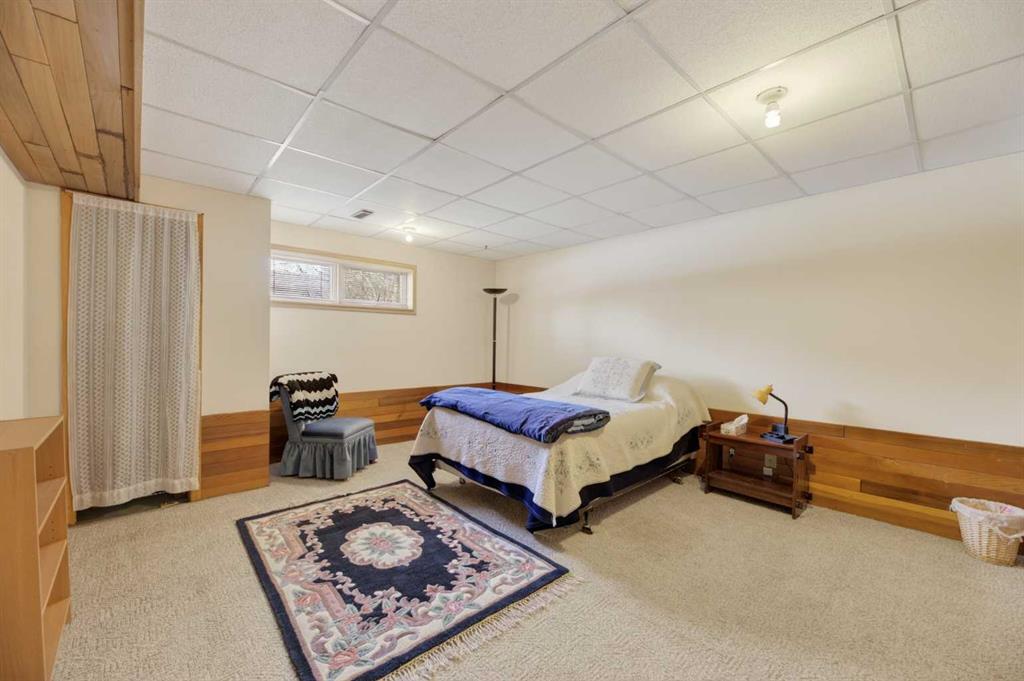 Downstairs, you’ll find an expansive family room with a brick-faced wood-burning fireplace, a large recreation area, wet bar with refrigerator, fourth bedroom, office/den, 4-piece bathroom, and laundry room (washer and dryer included). The lower level also houses a newer hot water tank (2021).