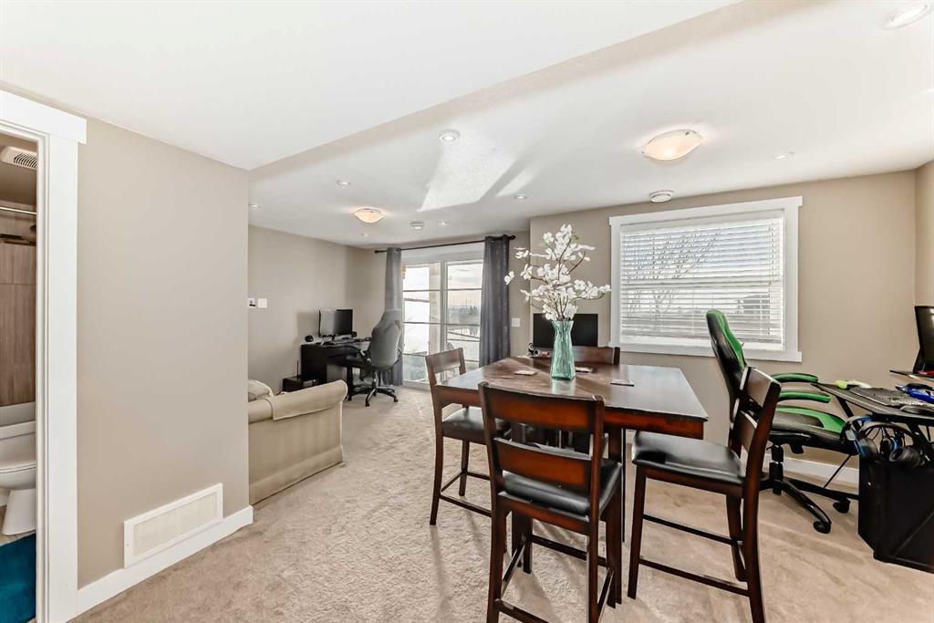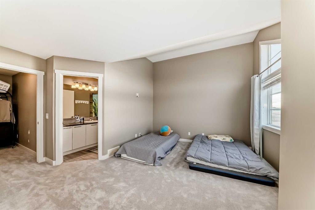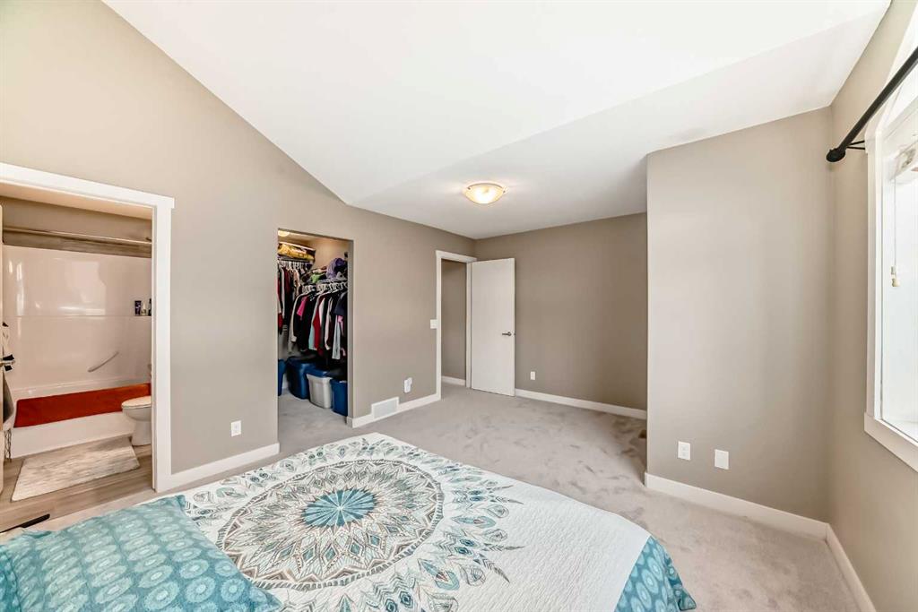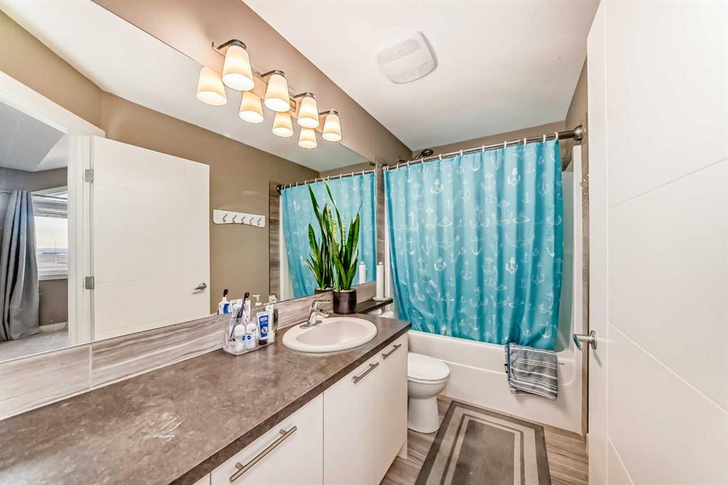 NEW CARPETS UPPER FLOOR, NEW LAMINATE FLOORING LIVING ROOM, NEW PAINT, NEW HOT WATER TANK. Experience modern living in this beautifully maintained home located in the vibrant community of Redstone. This property offers a bright, open-concept layout with stylish contemporary finishes and spacious living areas designed for both comfort and functionality and just freshly painted. The main floor offers an open concept with new living room laminate flooring and spacious balcony great for relaxing overlooking the pond and mountain view with natural lights, Kitchen offers lots of storage with white crisp cabinetry and newer stainless steel appliances with granite counter tops and kitchen island and has a spacious powder room. Head upstairs, carpet on stairs going upstairs, hallways and bedrooms were just replaced, this upper level offers a very spacious master bedroom with vaulted ceiling a walk in closet and an en-suite 4 piece bathroom , right across is another bedroom with vaulted ceiling over looking the pond and has easy access to another full bathroom. Laundry is conveniently located on this upper floor for your convenience. Enjoy your fully finished walk out basement with a large window and plenty of natural lights and 3rd full bathroom. The hot water tank was replaced in 2025 and the furnace was serviced in 2024. This house is moved in ready . Easy access to Stoney Trail, Métis Trail, Deerfoot Trail, the airport, and nearby parks and pathways. The backyard opens onto a stunning view of Redstone View of the mountains complete with a scenic bike/walk path, perfect for outdoor enthusiasts. Whether you’re a first-time buyer, growing family, or investor, this home offers exceptional value in a thriving neighborhood. A must-see! Book your showing today!