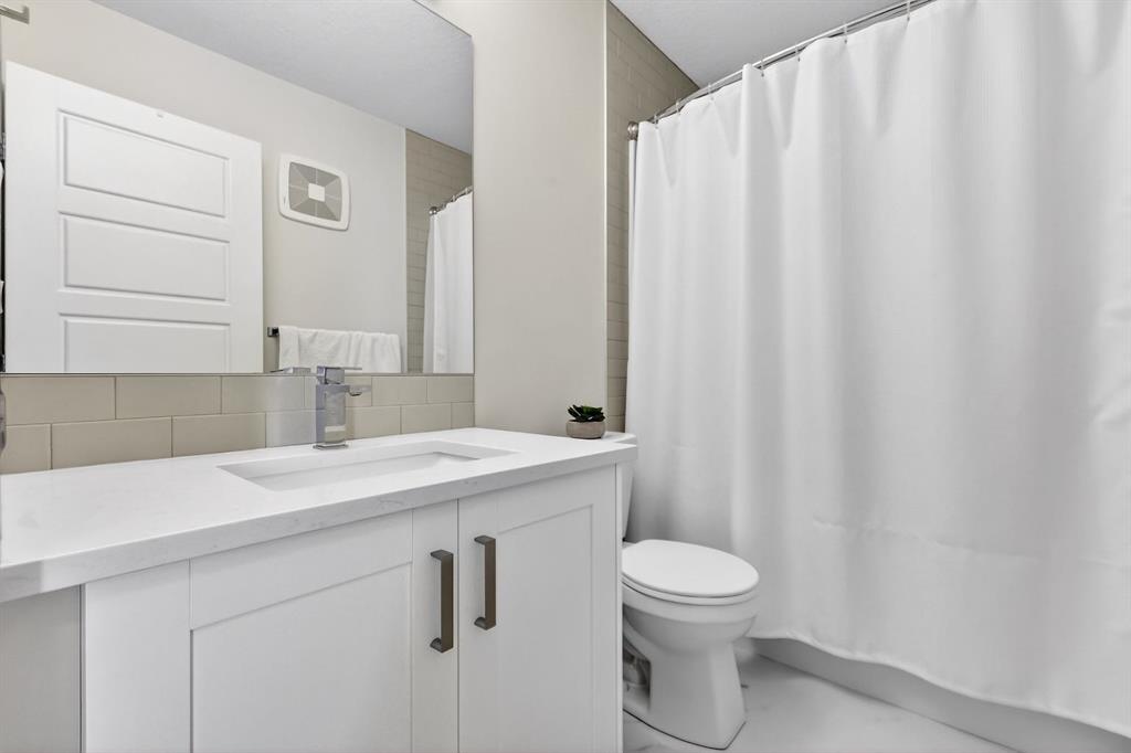 The third floor delivers privacy and comfort, with a spacious laundry room offering additional storage and a west-facing primary bedroom that captures warm afternoon light. The deep walk-in closet and elegant ensuite – complete with dual sinks, quartz countertops, and an oversized shower – create a daily ritual of calm and convenience. Two additional generously sized bedrooms share a well-appointed four-piece bathroom, providing flexibility for family or guests. Beyond aesthetics, this 2022-built Cranston townhome is equipped for the future with a brand new air conditioner, hot water on demand, a heat recovery ventilator, fibre optic high-speed internet, and an oversized insulated double attached garage with a double driveway comfortably fitting four vehicles. The garage is already equipped with an electrical panel for a future EV charger, blending practicality with forward-thinking design. Visitor parking within the complex and additional street parking ensure convenience for guests, while pet-friendly policies with board approval make it easy to bring every member of the family home. Overlooking a scenic wet pond and located near the river pathways of Fish Creek Park, shopping, schools, and everyday amenities, this home offers easy access to the ring road and Deerfoot Trail, connecting you seamlessly to the rest of Calgary.