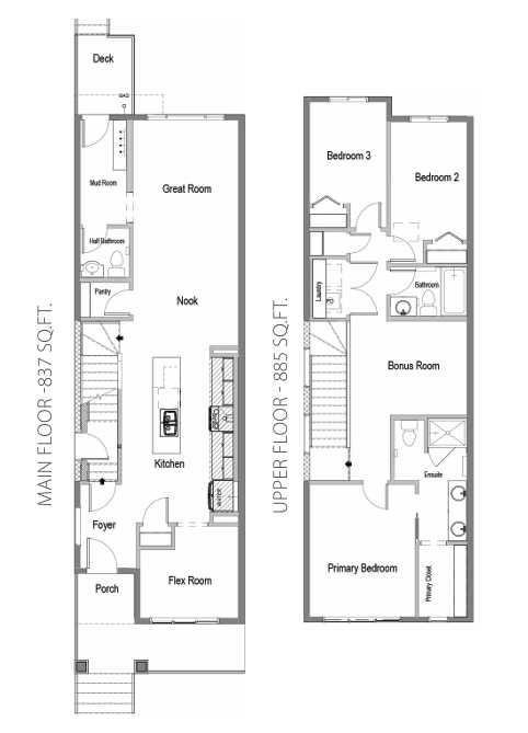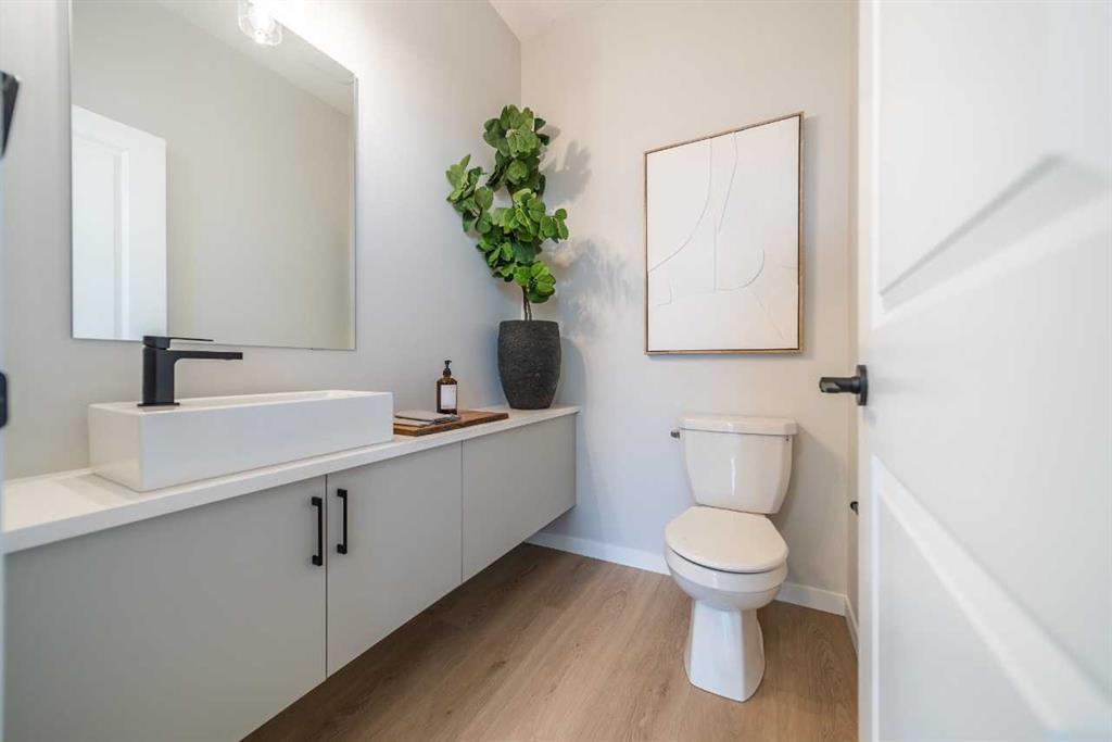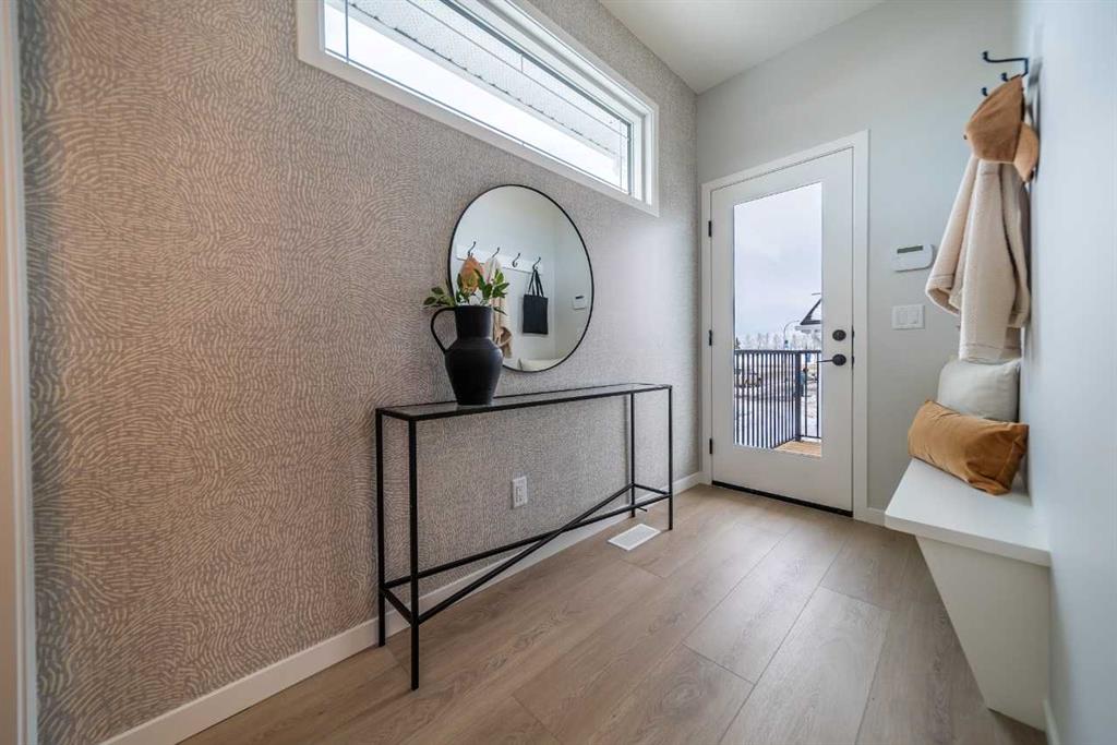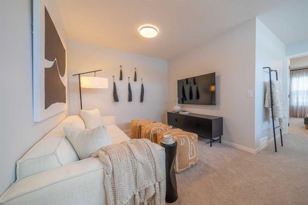 Tentative possession of July 2026! Bright & open semi-detached home by Cedarglen Homes. 1,722 sq. Ft of living space, including 3 bedrooms, 2.5 bathrooms, main floor flex room, bonus room, upper laundry, & mud room w/ bench & coat hooks. Kitchen features quartz countertops, full height cabinets & tile backsplash, chimney hood fan built-in microwave layout, gas line, & waterline. Full height tile in showers. Side entrance, rough ins, 2 windows, & 8’9″ ceiling height in basement. James Hardie fiber cement paneling, full width concrete front veranda, wood deck w/ BBQ line, & 20’x20′ gravel parking pad. Energy efficient triple pane windows, tankless water heater, & R-50 attic insulation. Photos are representative.