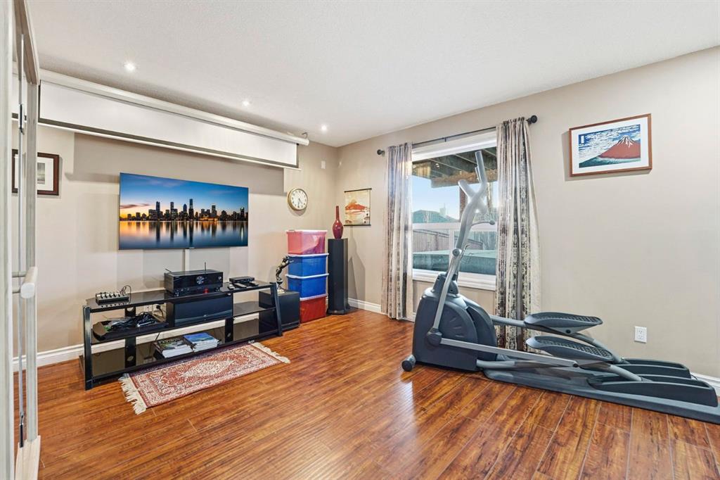 The fully developed walk-out basement adds exceptional versatility, featuring a wet bar, full bathroom, and a flexible den space currently set up as a home gym (previously a bedroom) and Sauna, offering options for recreation, work, or guests. With direct access to the backyard, this level is perfect for entertaining or multi-functional living.