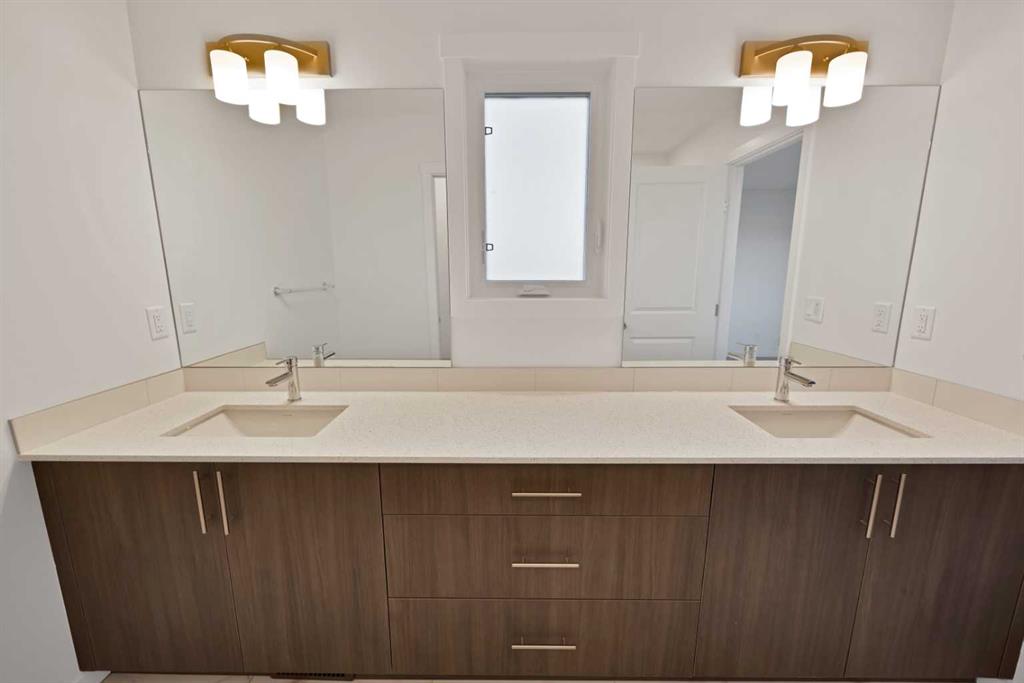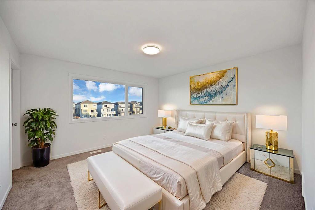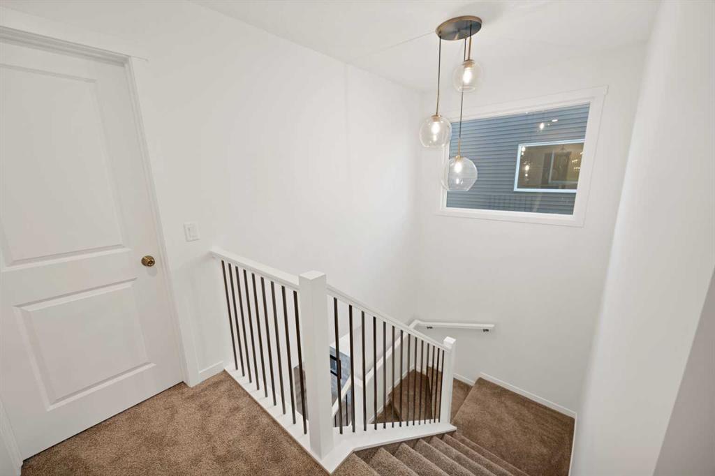 Welcome home to this stunning walkout duplex that perfectly blends modern elegance with functional design. This brand-new construction offers 1,575 square feet of meticulously crafted living space with an attached double front garage, set on a generous 3,579 square foot walkout lot that backs onto a beautiful greenspace with a pond. The main floor welcomes you with a spacious living area featuring an elegant electric fireplace, while a walkthrough pantry connects the mudroom to the gourmet kitchen. Here, stainless steel appliances, including a gas stove and chimney hood fan, shine under recessed lighting. The open-concept layout seamlessly integrates the kitchen, great room, and dining area, where large windows fill the space with natural light and create an inviting atmosphere for both everyday living and entertaining. Upstairs, the primary bedroom serves as a private retreat, complete with a luxurious four-piece ensuite and a sprawling walk-in closet that provides ample storage for your wardrobe essentials. Enjoy serene views of the pond and green space, with no adjoining backyard to interrupt the scenery. Two additional spacious bedrooms offer large windows framing picturesque views of the surrounding landscape. A conveniently located laundry room, equipped with a front-load washer and dryer, adds both comfort and practicality to your daily routine.