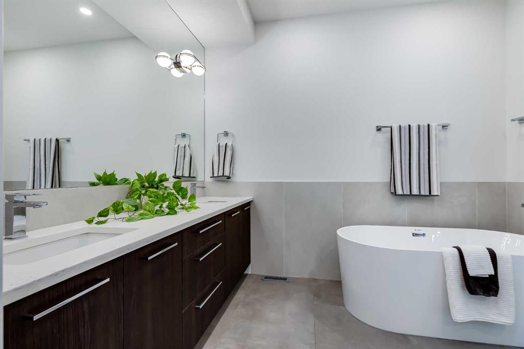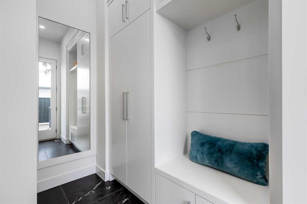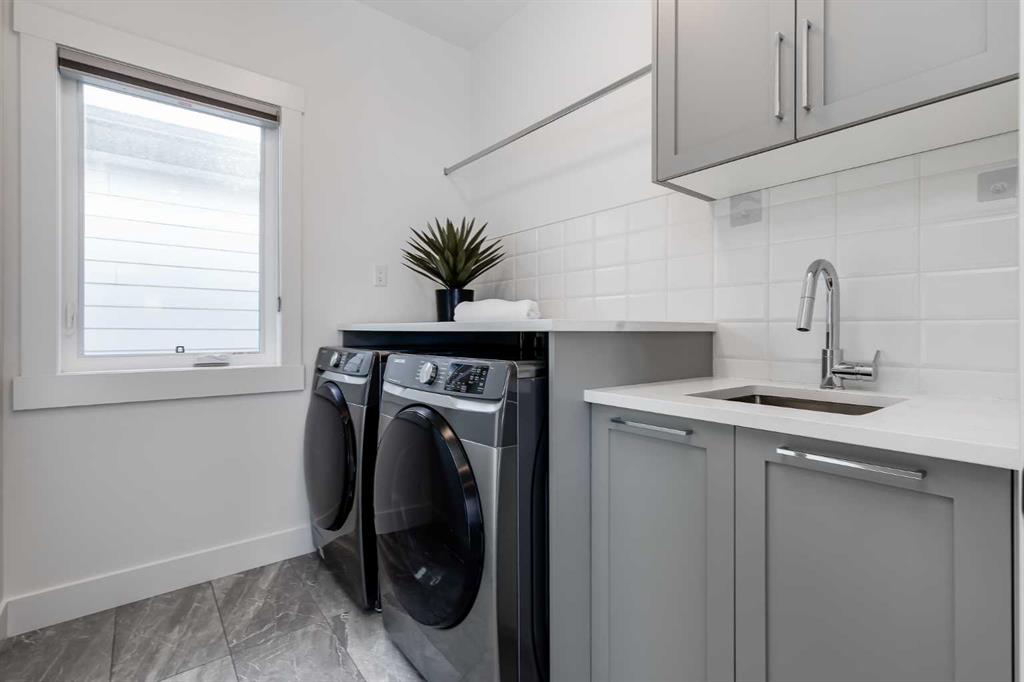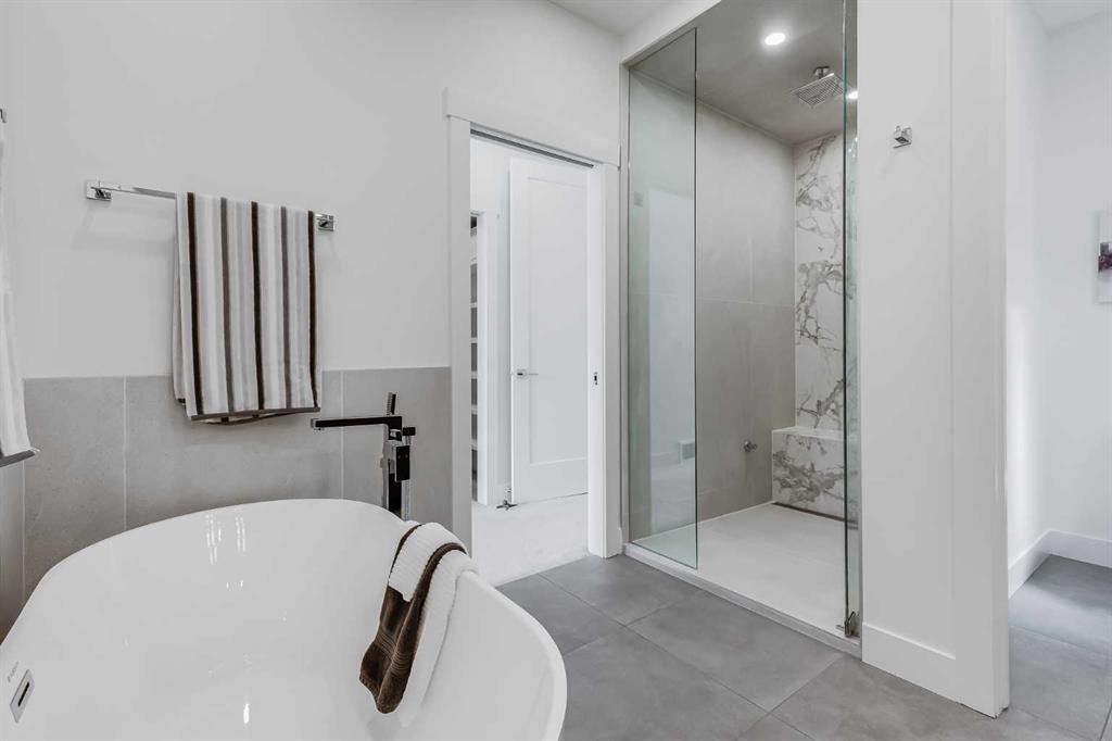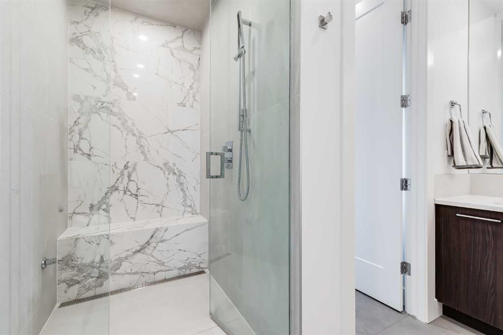 This custom-built detached infill in Parkdale offers over 2,800 sq ft of thoughtfully designed living space, blending refined finishes with everyday functionality. The exterior makes a strong first impression with Hardie board siding, exposed aggregate, and professionally landscaped, low-maintenance grounds featuring rock and artificial turf that looks sharp year-round. Unlike many new builds, the landscaping is fully completed and the home is enhanced with custom Hunter Douglas window coverings, providing privacy, style, and a finished feel from day one. Inside, the main floor is defined by 10-foot ceilings, 8-foot doors, wide plank engineered hardwood, and an abundance of natural light from large windows. The open-concept layout connects the dining area at the front of the home to a well-appointed kitchen and inviting living room at the rear. The kitchen is anchored by a 10-foot waterfall quartz island with seating and complemented by dual-tone custom cabinetry with marble accents, a marble backsplash, and integrated appliances including a JennAir oversized fridge and Bosch wall oven and microwave. The living room centres around a gas fireplace with a full-height marble surround and opens to the backyard through large sliding doors. A functional mudroom with built-in storage, a powder room, and a glass guard staircase complete the main level. The upper level is anchored by a spacious primary suite with plush carpeting and a custom walk-in closet featuring built-in organization. The spa-inspired five-piece ensuite is finished with a deep soaker tub, dual vanities, and a glass-enclosed shower accented by a marble feature wall and bench, delivering a calm and sophisticated setting. Two additional bedrooms, a beautifully finished four-piece bathroom, and a dedicated laundry room with a sink complete this level. The lower level extends the living space with a generous recreation room and a stylish wet bar equipped with a sink and bar fridge, ideal for entertaining. A fourth bedroom or flexible space allows for use as a guest suite, home gym, or private office, and is complemented by a full bathroom and ample storage. Outside, the backyard is designed for ease and enjoyment with a composite deck, gas line for a BBQ, artificial turf, and access to a heated double detached garage finished with epoxy flooring. Air conditioning adds comfort during the warmer months. Parkdale is one of Calgary’s most sought-after communities. You’re steps to the Bow River pathways and close to local favourites like Lics Ice Cream, Lazy Loaf & Kettle, and Nove Nine. Nearby green spaces include the off-leash park, Edworthy Park, and the amenities of the Parkdale Comm Assoc with its playground, rink, and garden. Well-regarded schools and convenient transit options further enhance the area’s appeal, alongside proximity to the Foothills and Children’s Hospital, the U of C, Market Mall, and the growing University District. Downtown is just minutes away, and the mountains are within easy reach.