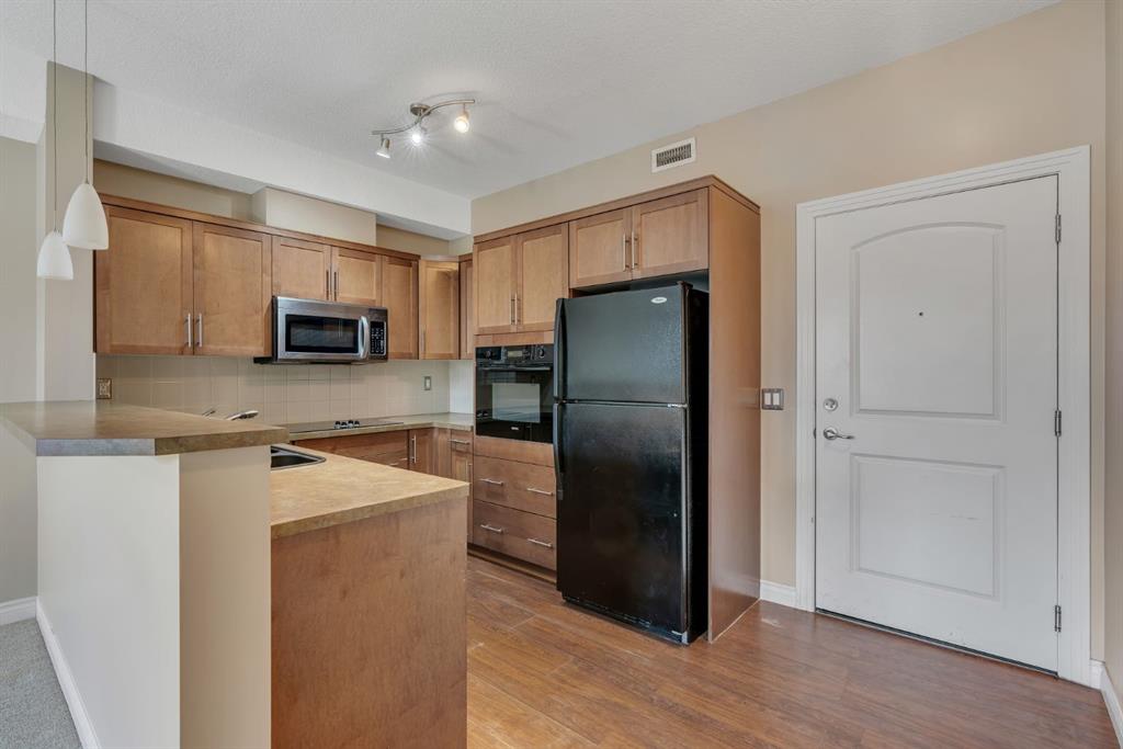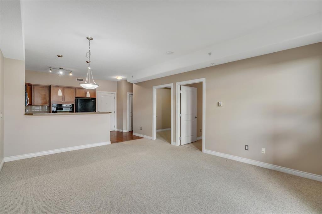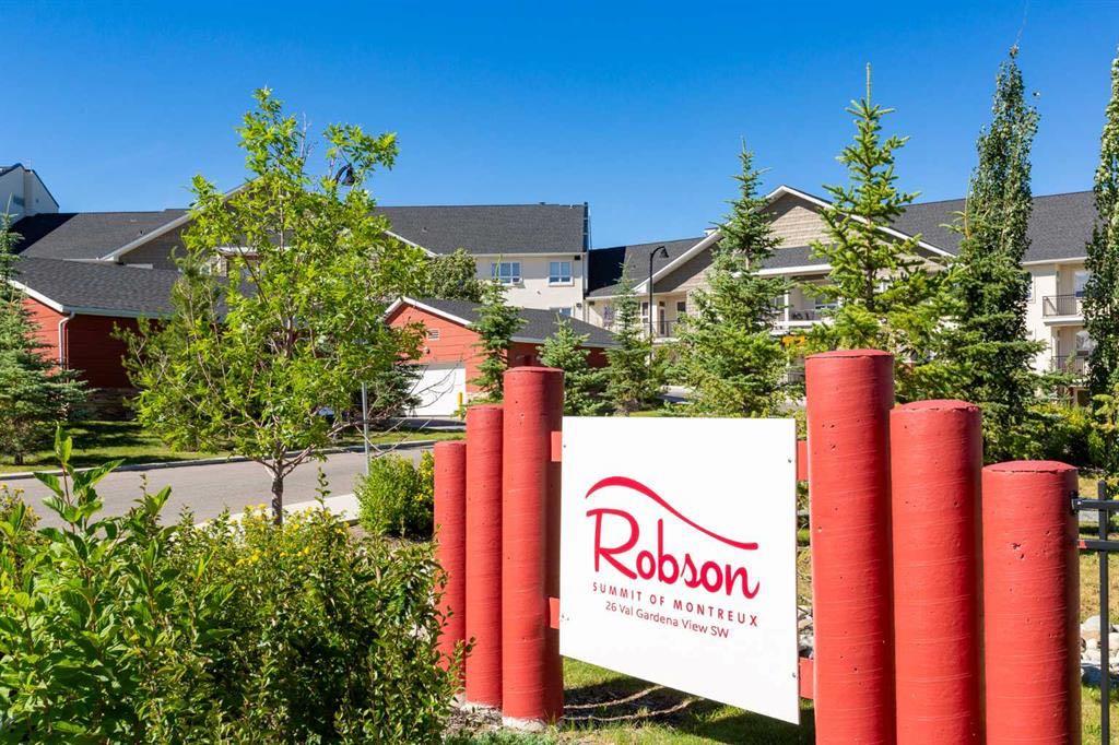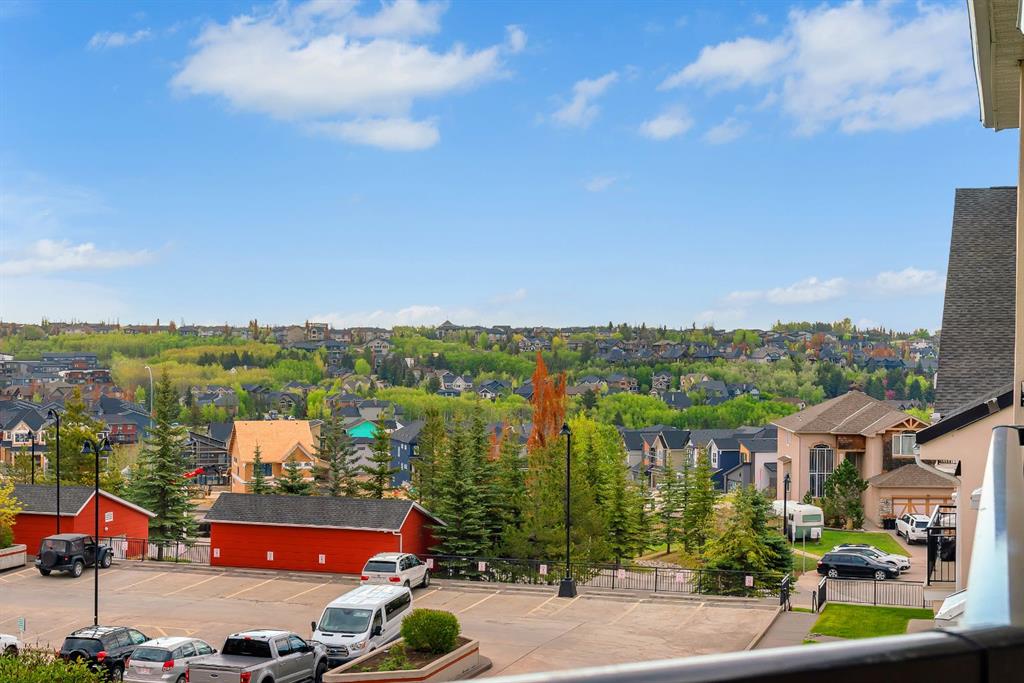 Welcome to the highly sought-after Robson in the Summit of Montreux condominium! This expansive top floor unit offers 800 sq ft of stylish, open concept living with no neighbours above for ultimate privacy and tranquility. Featuring 1 spacious bedroom plus a versatile den, the unit also includes underground parking and a private storage locker for your convenience. The kitchen is appointed with rich cinnamon-stained maple cabinetry, a built-in wall oven, sleek cooktop, and ample counter space, including a breakfast bar perfect for casual dining. The open layout seamlessly connects the kitchen to the bright dining and living areas, which flow out to a massive private balcony with unobstructed east facing views of the Springbank Valley. The king sized primary bedroom includes a walk in closet and a private 4 piece ensuite. A dedicated den/home office offers a quiet retreat for work or study. Additional highlights include a fully equipped fitness centre in the complex and ample visitor parking. Nestled on a quiet street in Springbank Hill, you’re just minutes from Aspen Landing Shopping Centre, the LRT station, Westside Rec Centre, and scenic tree-lined walking paths. Don’t miss your opportunity to own this exceptional top-floor unit in one of Calgary’s most desirable communities. A must to see