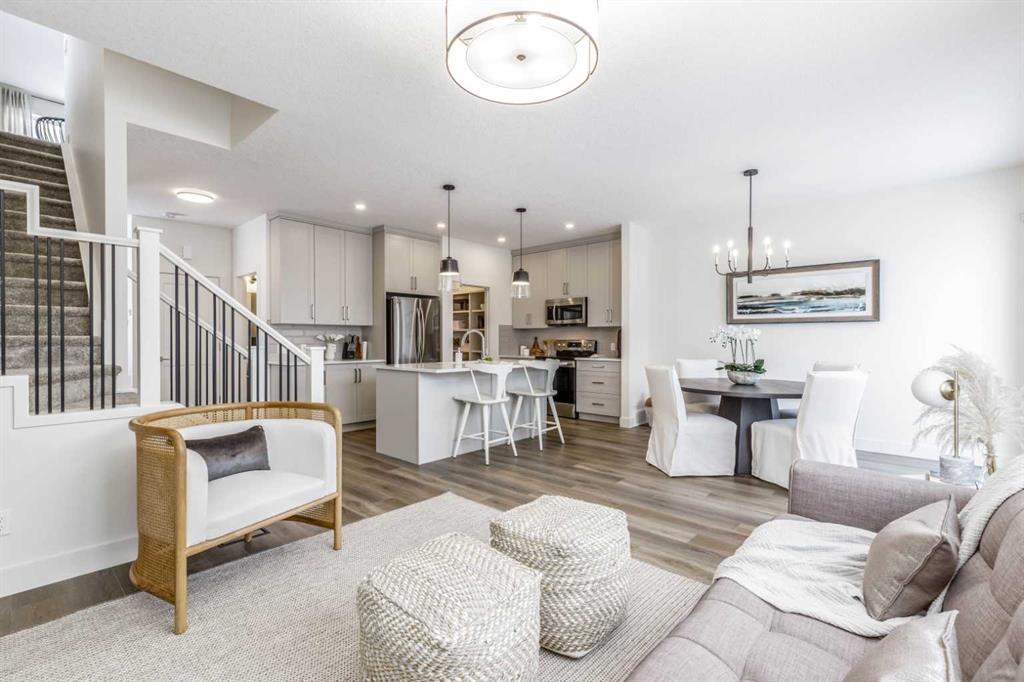 ** Beautiful Community of Rivercrest** West facing back yard** With easy access to Highway 22 and Highway 1, this growing community of Rivercrest is the perfect place to make it home for your family. Here you can breathe easy, enjoying the natural beauty of the area and the town’s many amenities while staying connected to everything Calgary and the Rocky Mountains has to offer. Up and coming Elementary School will be in a short walking distance!! Framing is completed and insulation will be starting shortly. You still have time to make to make this your home by making interior color selections. This 3-bedroom, 2.5 bath, with bonus room 2-storey features 1,884 sq.ft. of spacious living with exceptional quality finishes that only a Janssen Home can bring! Main floor features living room with Gas Fireplace, a kitchen with walk through pantry/mudroom, nook eating area opening onto a 12’ x10’ deck. Upper level features a primary retreat with walk-in closet that adjoins by pocket door to a spacious laundry room with lower cabinet and undermount deep sink, 5-pce ensuite with dual undermount sinks, soaker-tub & walk-in shower, 2 additional bedrooms off the bonusroom and an additional 4-pce bath. Upgraded features include: 9′ main-floor walls, painted railings & metal spindles, luxury vinyl plank flooring throughout main level, tile in laundry & upper baths. Full height kitchen cabinets with soft close doors/drawers & full extension drawer glides, quartz counters, undermount sink plus 5 S/S appliance package which includes gas range and range hood!. Built on Site solid shelves. LoE Argon slider windows, R-50 attic insulation, high efficient furnace w/programmable thermostat & drip humidifier, hot water on demand and 4 pc R/I plumbing in basement. Spacious covered porch at front, finished deck at back w/aluminum railing & steps to grade. Warranty includes 1 yr comprehensive, 2 yrs heating, electric, plumbing, 5 yrs building envelope, 10 yrs structural. *Note – Interior and Exterior photos are from previous builds*.
